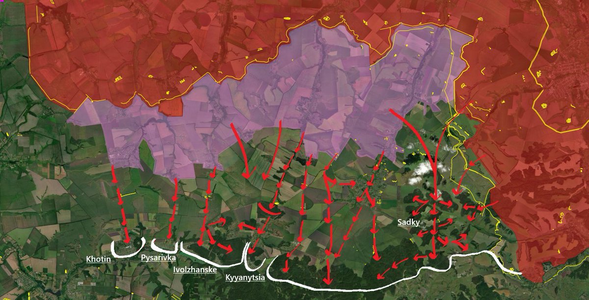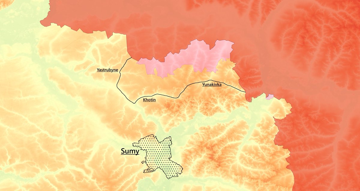 Russian are following the topography and may be able to bomb Sumy if Yunakivka falls. Second map shows what is the possible objective.