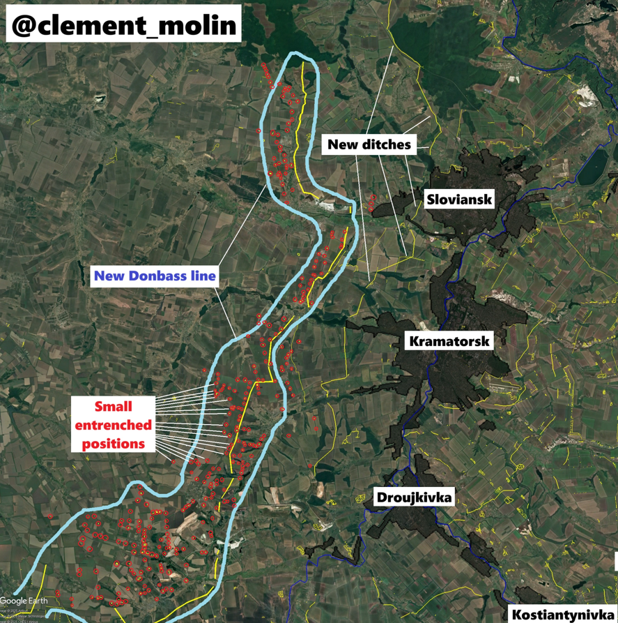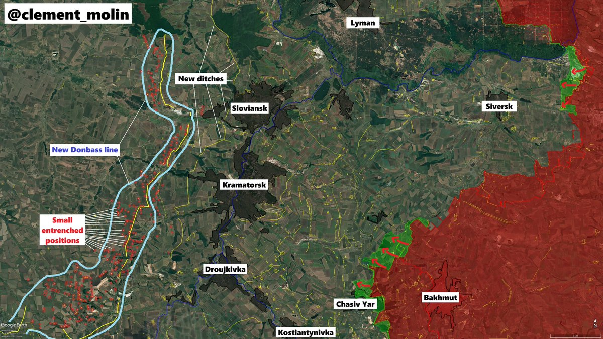 Also, a new ditch cover the area from Droujkivka to the Siverski Donets river, but there are now entrenched position, so this is not yet a defensive line.
