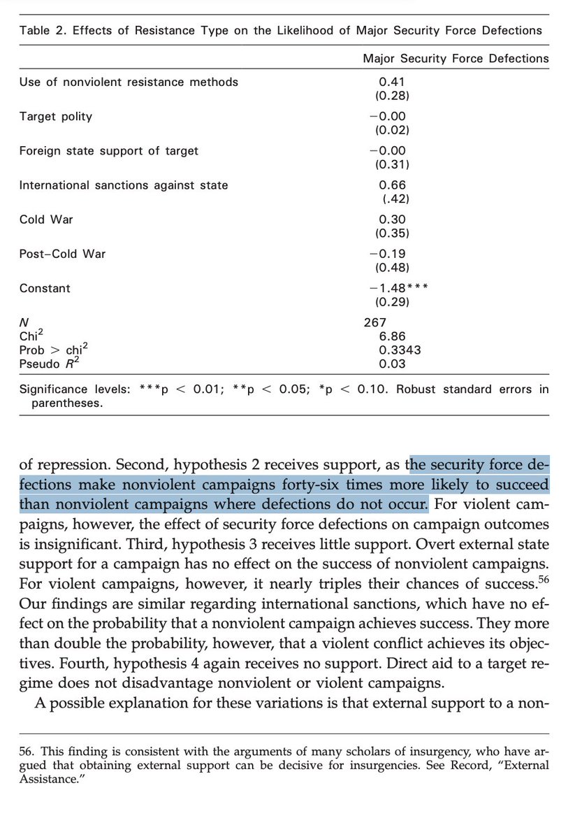Security force defections make campaigns FORTY-SIX TIMES more likely to succeed.