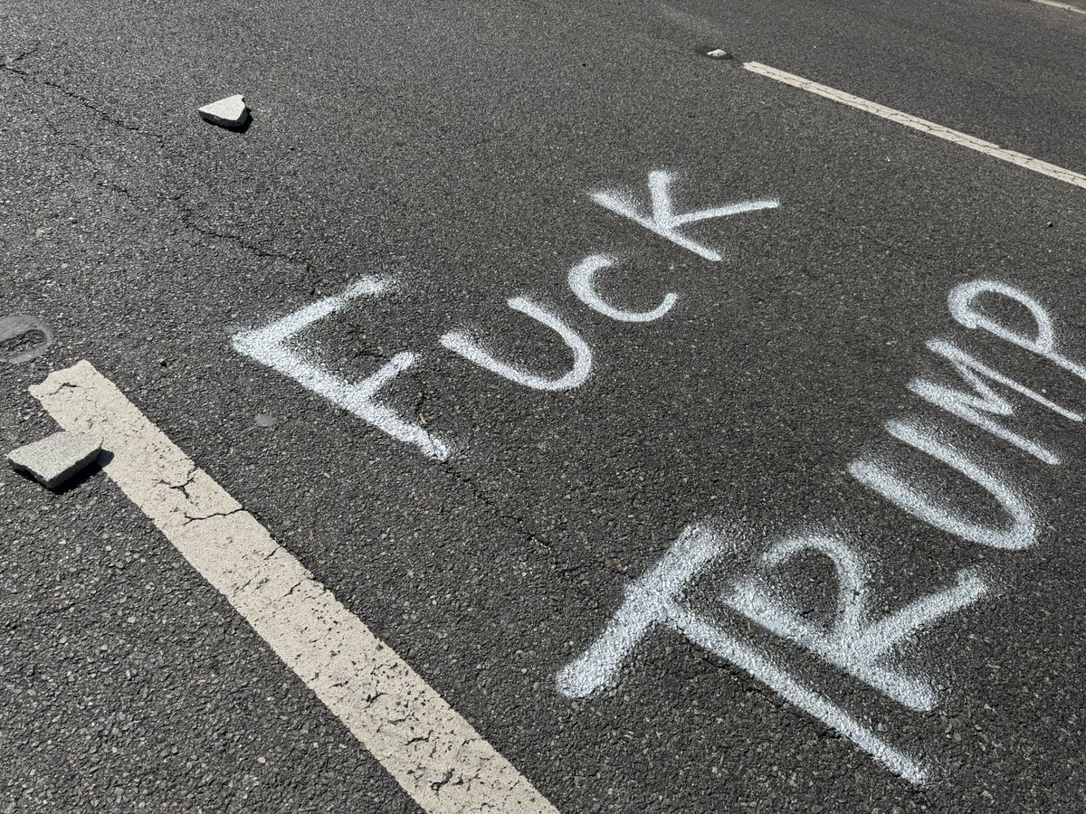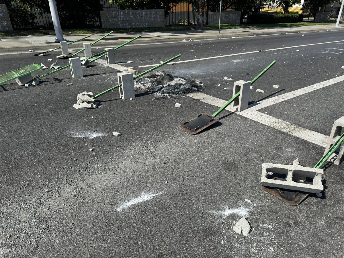 These cement bricks were also used to build make-shift roadblocks for police. You can see pieces/fragments of cement throughout the area where protestors and DHS agents faced off.