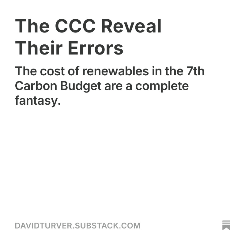 The CCC have dramatically underestimated the costs of offshore wind &solar and omitted the costs of onshore wind making their overall cost estimates simply junk. They are worth less than the paper they are written on. (10/n)