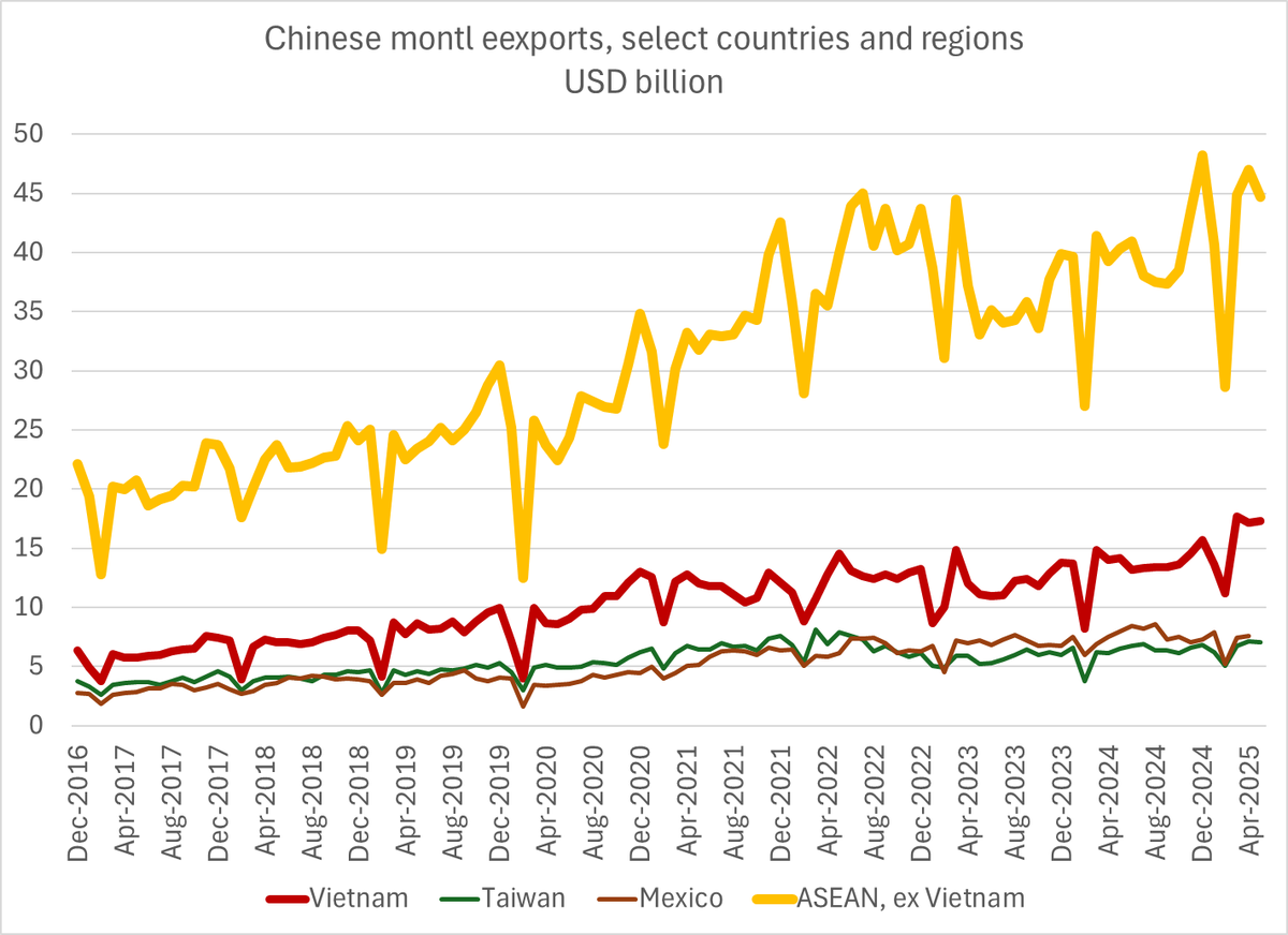 So far there are no real signs that I can see that Trump's go-it-alone tariffs have tamed China's export juggernaut