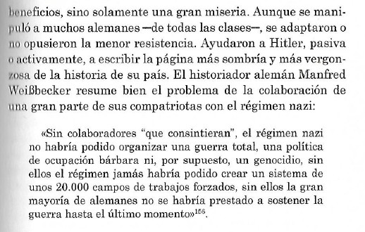6/10 Por supuesto que militantes y votantes fascistas tienen su cuota de responsabilidad personal en el ascenso del fascismo y en sus crímenes. Algunos incluso medran a pequeña escala. Ningún régimen político sobrevive sin cierto consenso social. Jacques Pauwels – Grandes negocios con Hitler