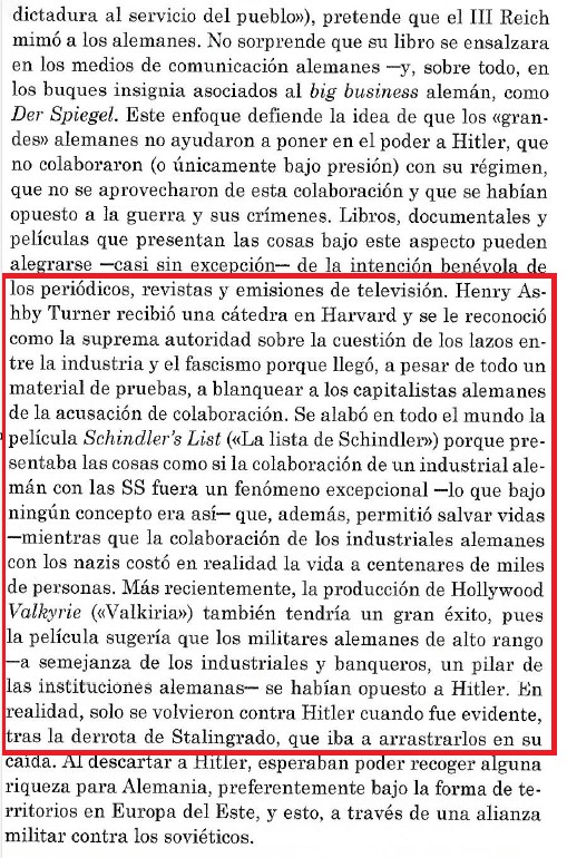 8/10 Y, por último, pero más importante, porque apartan del foco el lucro obsceno y genocida de los capitalistas, poseedores de los medios corporativos que dan bombo a determinadas reconstrucciones de la historia y que hoy crean una ficción consensuada que llaman realidad. Jacques Pauwels – Grandes negocios con Hitler
