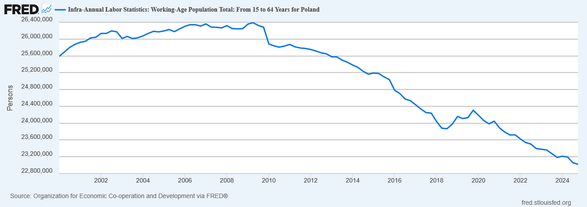 Dokładając do tego polską demografię zaskutkuje to zerowym wzrostem ("całkowitym") gosp, taki jak od 8lat ma miejsce np w DEU: fred.stlouisfed.org/series/CLVMNAC…