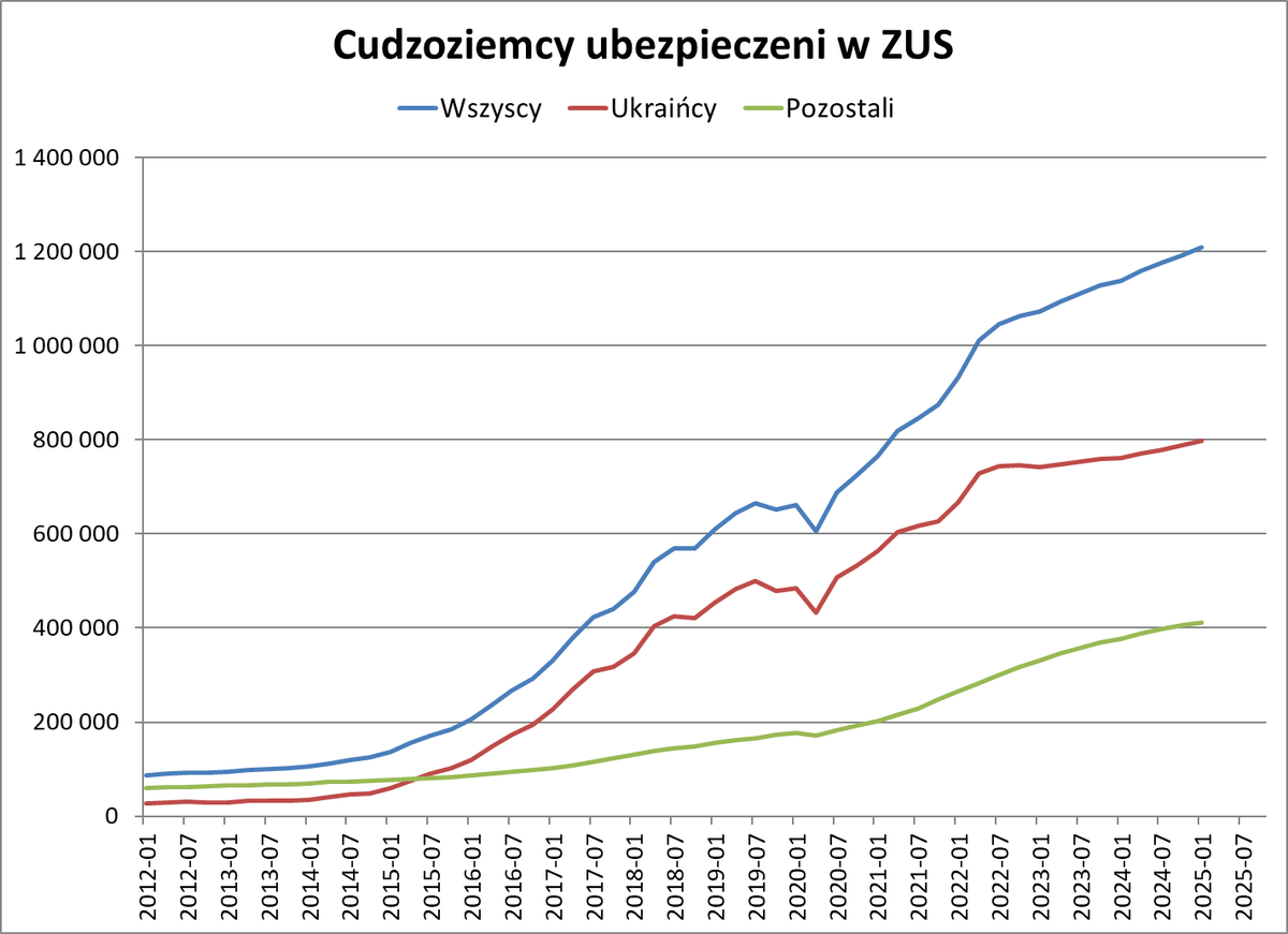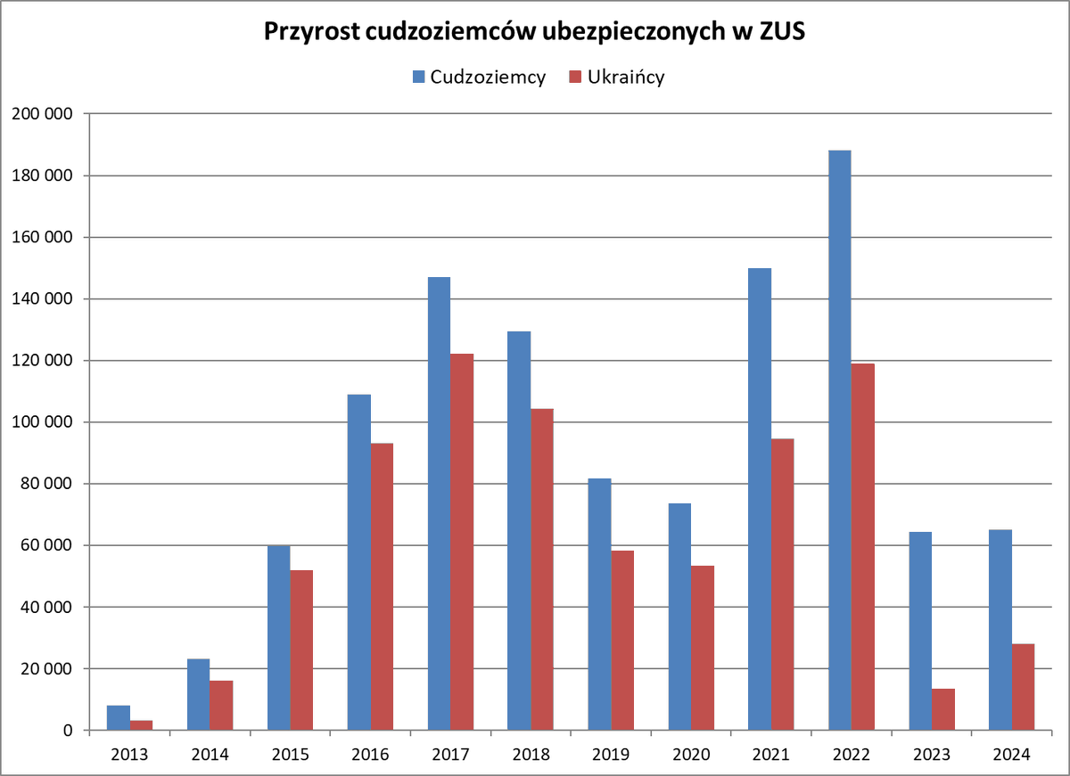 W ogóle ostatnie 2 lata charakteryzują się tym, że roczny przyrost +60k zarejestrowanych cudzoziemców nie był nadzwyczajny, szczególnie w porównaniu z latami poprzednimi
