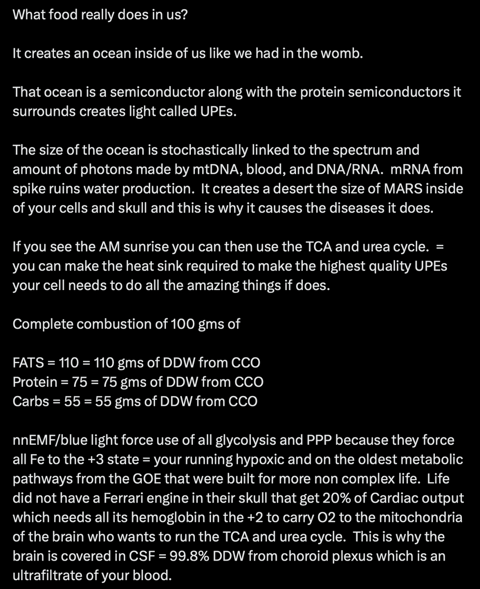 nnEMF/blue light force use of all glycolysis and PPP because they force all Fe to the +3 state = your running hypoxic and on the oldest metabolic pathways from the GOE that were built for more non complex life. Life did not have a Ferrari engine in their skull that get 20% of Cardiac output which needs all its hemoglobin in the +2 to carry O2 to the mitochondria of the brain who wants to run the TCA and urea cycle. This is why the brain is covered in CSF = 99.8% DDW from choroid plexus which is an ultrafiltrate of your blood.