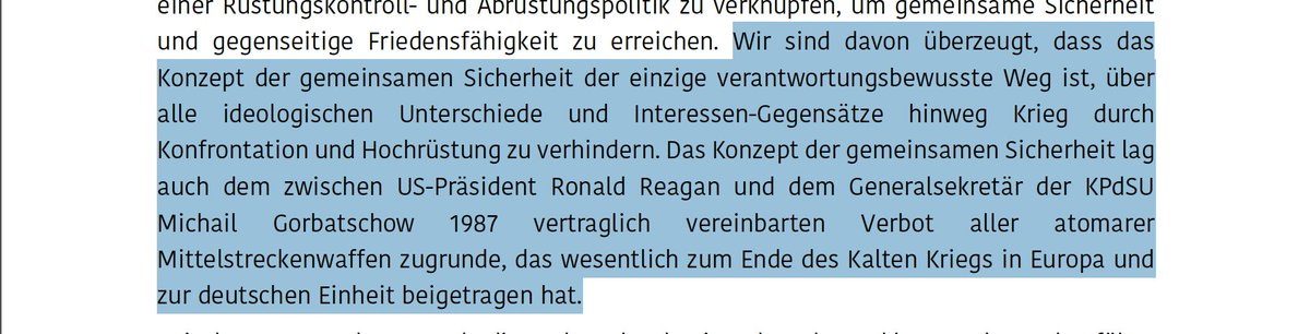 und der Diktatur Putins erfolgt. Stattdessen wird mit Verweis auf die späten 1980er und das Ende des Kalten Krieges ein vermeintlicher ideologischer Irrweg kritisiert, der überlegene politische Lösungskonzepte wie Rüstungskontrolle und 'gemeinsame Sicherheit' ablehnt. Dieses