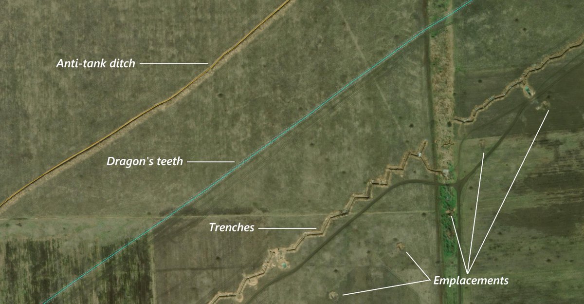 Here is my work in full, revealing the full structure of this section of the Surovikin Line.