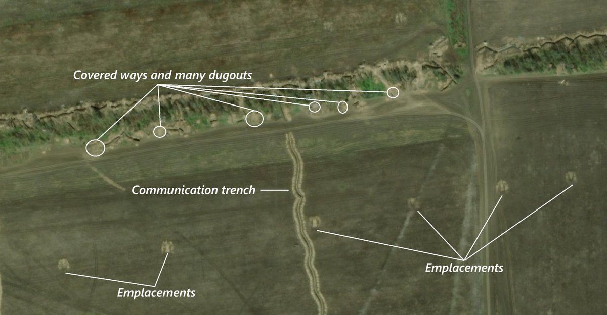 In some parts, though, the line can thin out, literally and in terms of complexity, with only a simple trench system with periodical dugouts being present. This is the case of the Novoprokopivka - Verbove section, which might be one of the reasons of why Ukraine chose to attack here.