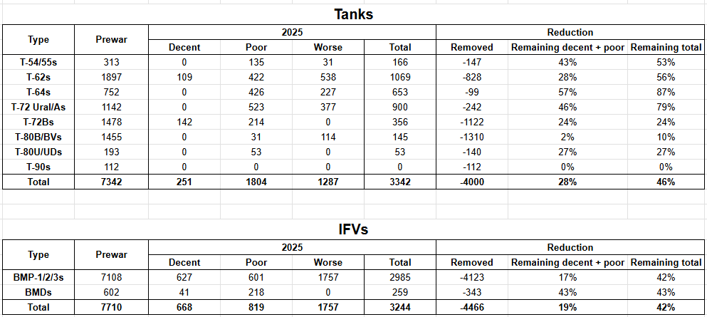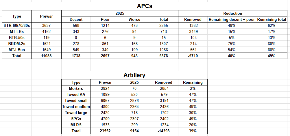 11/ The rest, we can assume if they aren't entirely depleted of heavy equipment by now, they'll be before this 2025 ends. And at the same time the major storage bases, both Central Tank Reserve Bases and Artillery Arsenals, keep getting thinner and thinner.