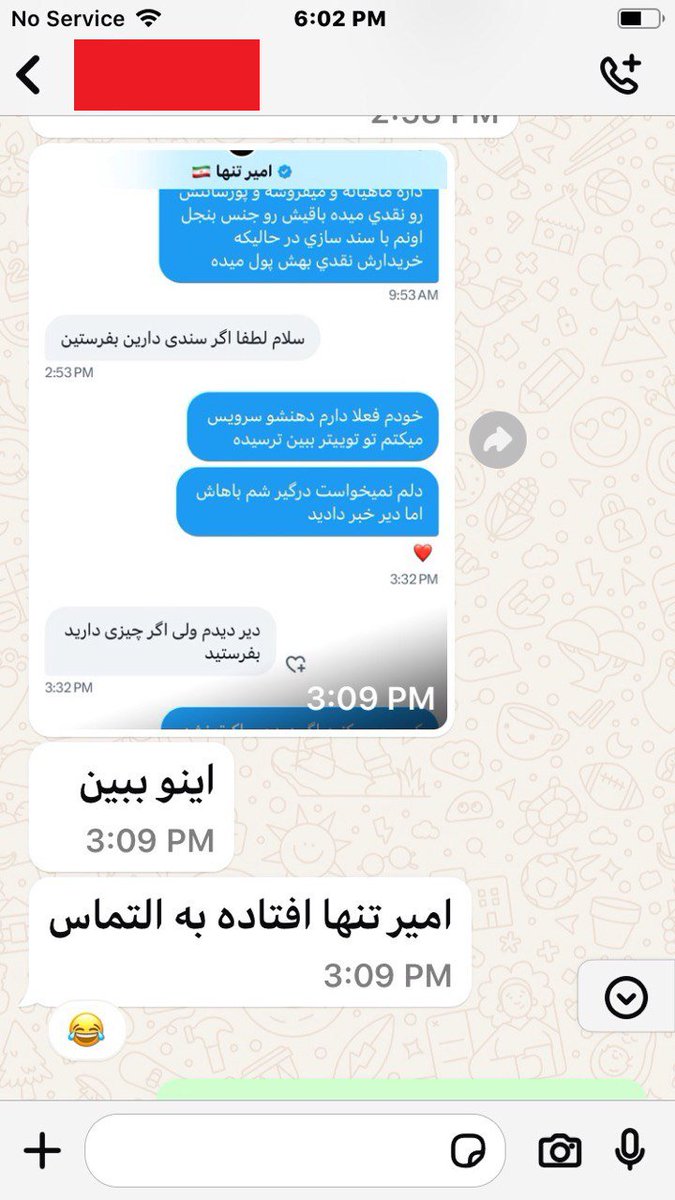 کل اطلاعاتی که خودم از طریق اکانت تاچر دادم بهت (فتوشاپ حساب امارات ،عکسهای هنگامه و کلی اطلاعات فیک) تا ردتو بزنم ببینیم کدوم اکانت عامل تو هست و این اطلاعات رو بهش میدی دیدم بعله!