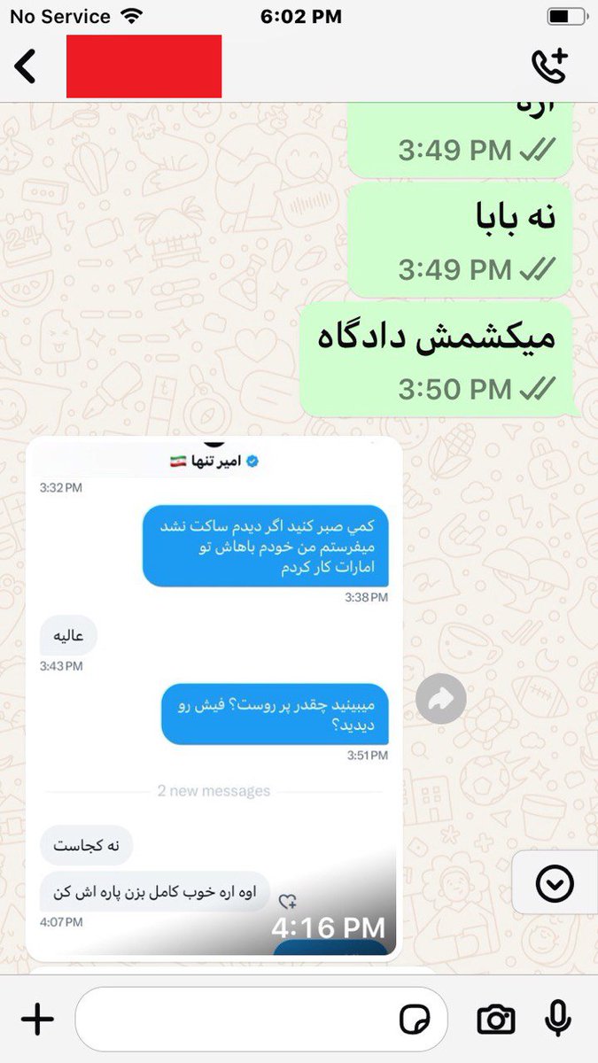کل اطلاعات فیکی که من از طریق تاچر بهت دادم رو دادی به اون #هادی_مهرانی مادرجنده ی قاچاقچی برانداز که الان پروژه شو از #علی_احمدنیا میگیره واسه پزشکیان توییت بزنه و اونم به عنوان افشاگری علیه هنگامه چه مانوری میداد باهاش و مرگ امیر چقدر بهتون میخندیدم😂
