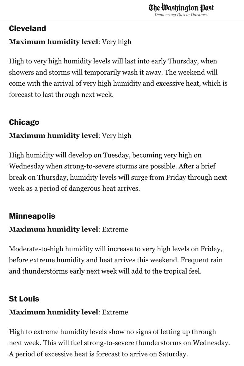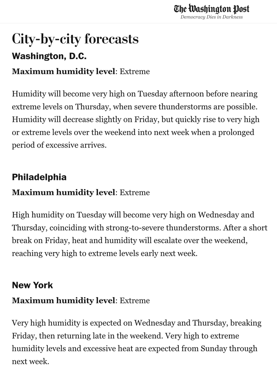 For around 150 million people across 34 states, as well as parts of southern Canada, it was more humid than Miami late Monday.