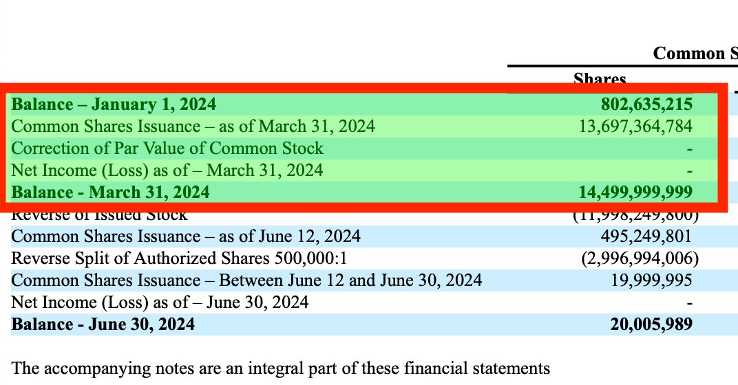 Even worse, what @JPNFamilyOffice failed to say is that is was in the H1-24 filings he had to report he not only added over 2B shares by April 2, 2024... he had actually issued well over 12B (no dilution eh?); but failure to scam enough volume he returned what he couldn't sell and initiated a reverse stock split instead... to increase the PPS and start selling again.