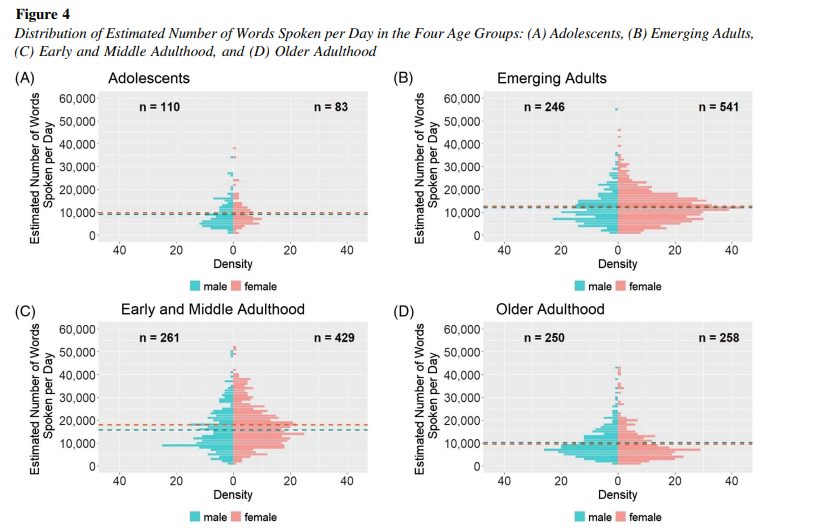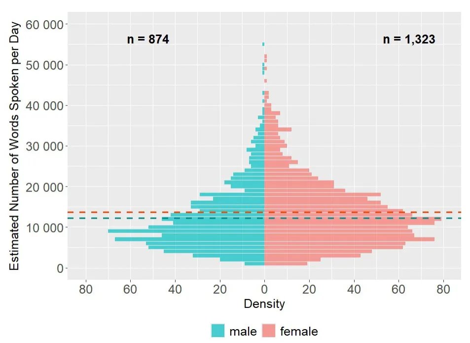 On average, women speak slightly more words per day than men do, with the largest difference among those who speak ~35,000 words per day. https://psycnet.apa.org/fulltext/2025-66513-001.pdf
