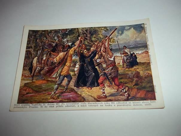 Pražský biskup sv. Vojtěch alias Adalbert po vyvraždění své rodiny Slavníkovců (995) vyrazil na misie k pohanským Prusům, jenže když se kácí les, létají oštěpy. 23.4.997 se mu pohané pomstili za ničení posvátných míst, a jeho tělo rovnou draze prodali Polákům jako relikvii.