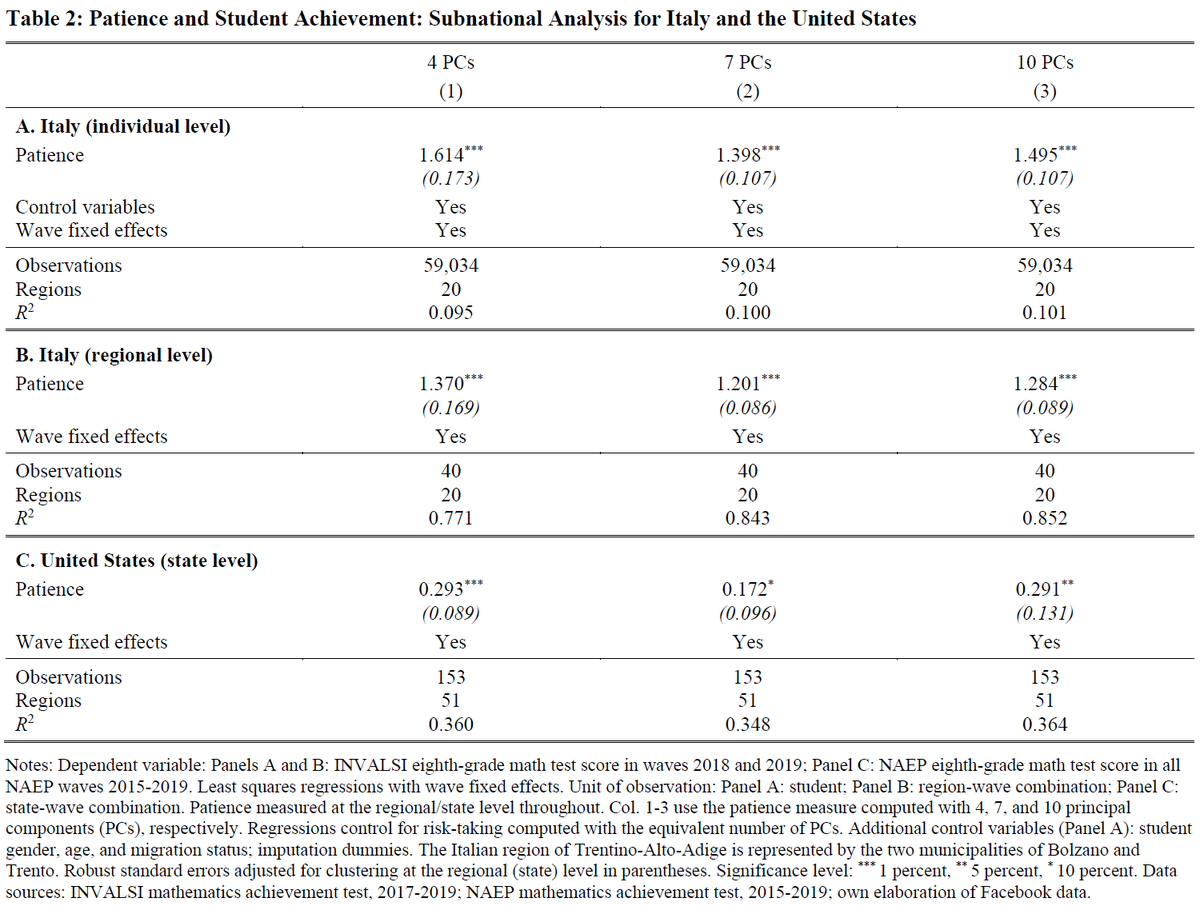 We combine the massive data available from social media –Facebook interests– with machine-learning algorithms to construct novel regional measures of patience within 🇮🇹 Italy & 🇺🇸 U.S.