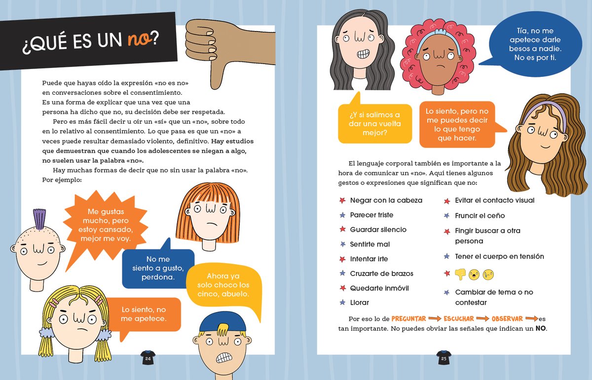 Un libro claro con lenguaje adaptado a la edad para profundizar en el concepto de consentimiento que se ha podido ir trabajando desde la primera infancia, pues no solo se habla del físico, sino también del emocional y todo lo que tiene que ver con relaciones sociales y afectivas.