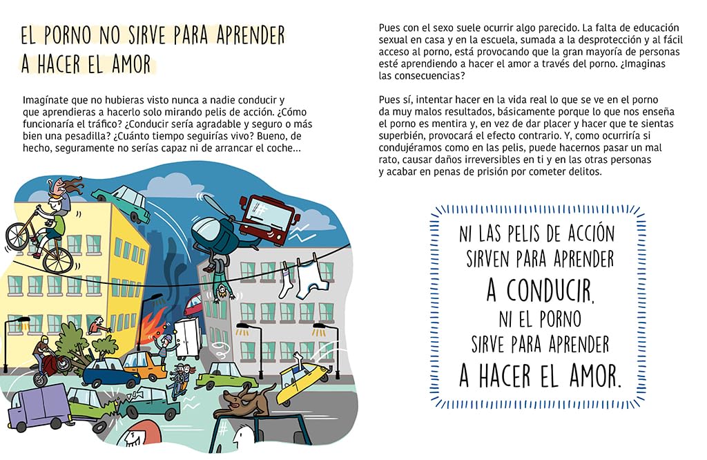 El libro "El porno no mola" habla sobre todo esto desde una perspectiva crítica y accesible a las y los adolescentes. En sus páginas se explica qué es el porno y cómo impacta en el concepto que se tiene del sexo, el cuerpo propio y ajeno y las relaciones, y por qué es una fuente errónea para aprender sobre sexualidad.