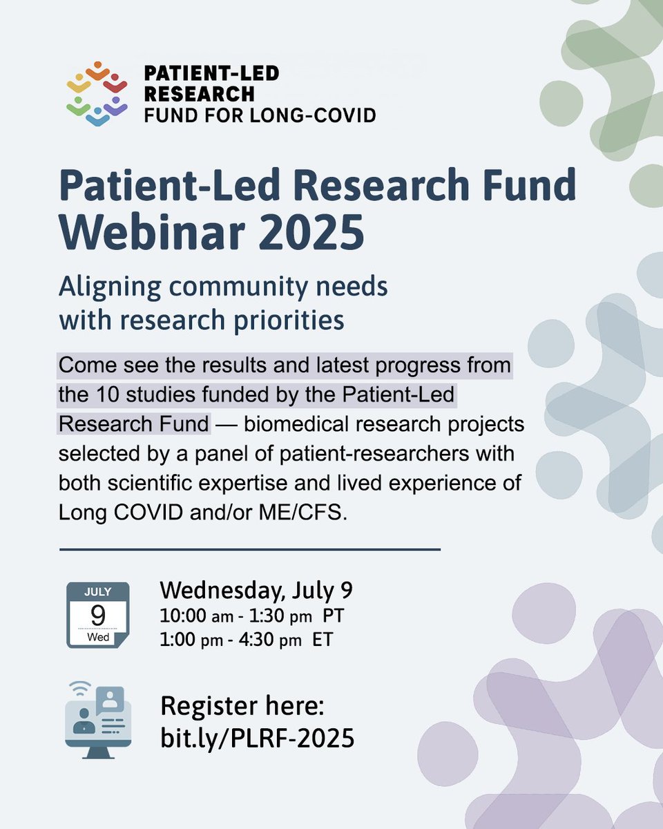 We're hosting a Patient-Led Research Fund (PLRF) webinar on July 9, 1–4:30PM ET!