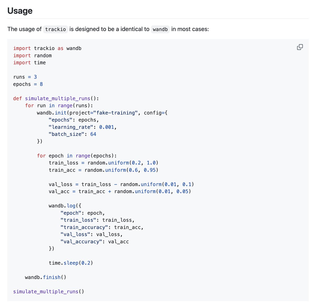 π― Local-first: You shouldn't need an account just to track and visualize metrics! We wanted to give ML practitioners a local-first option that allowed them to track metrics privately. Of course, If you want to persist the logs or share the dashboard with others, you have the option to do that through Hugging Face datasets/Spaces with a single line of code.