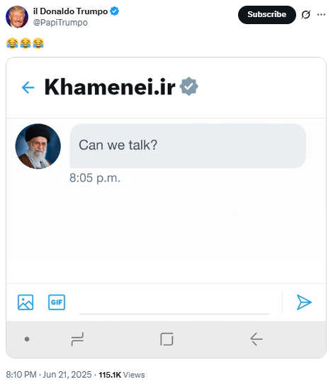 All caps, classic Trump... but this isn’t about tone, it’s about power... we just took out your best cards, we’re offering peace not from weakness, but from the high ground...