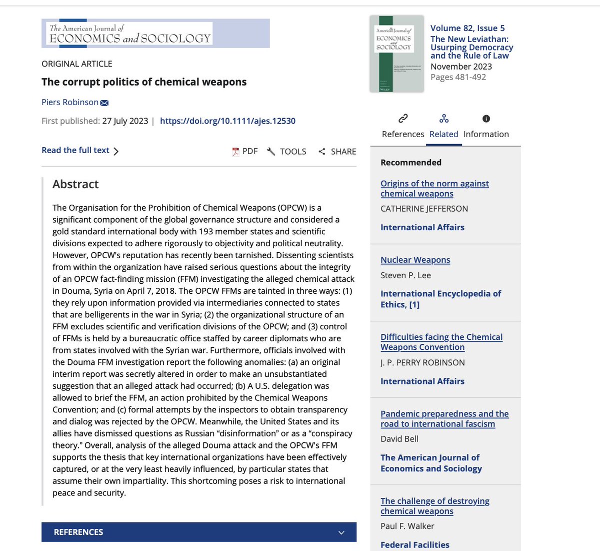7) The co-optation of the world's nuclear and chemical watchdogs- the @opcw and the @iaeaorg - for the purposes of justifying western militarism is an obvious crime. There should be accountability. onlinelibrary.wiley.com/doi/abs/10.111…
