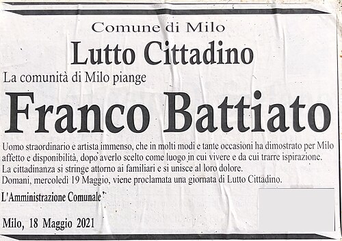 En sus últimos años pasó largo tiempo en su casa a los pies del Etna, pero no dejó de rodar, grabar o colaborar con otros artistas, desde Billy Corgan al filósofo Manlio Sgalambro.