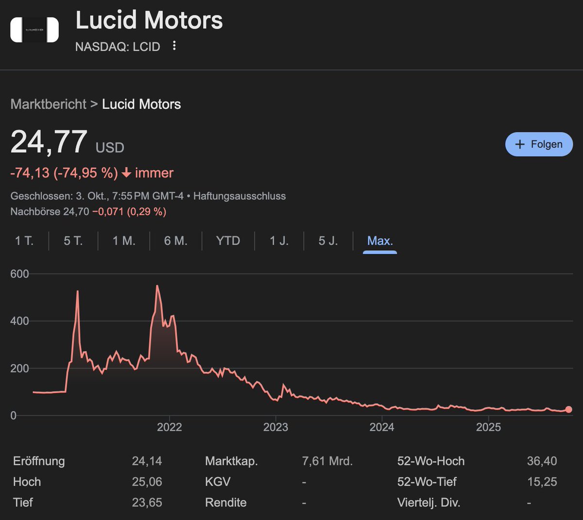 🚩 Hauptprobleme: Schwierigkeiten beim Hochfahren der Produktion, Kostenüberhang, steigender Wettbewerb im EV-Bereich, CEO-Wechsel, Reverse-Split.