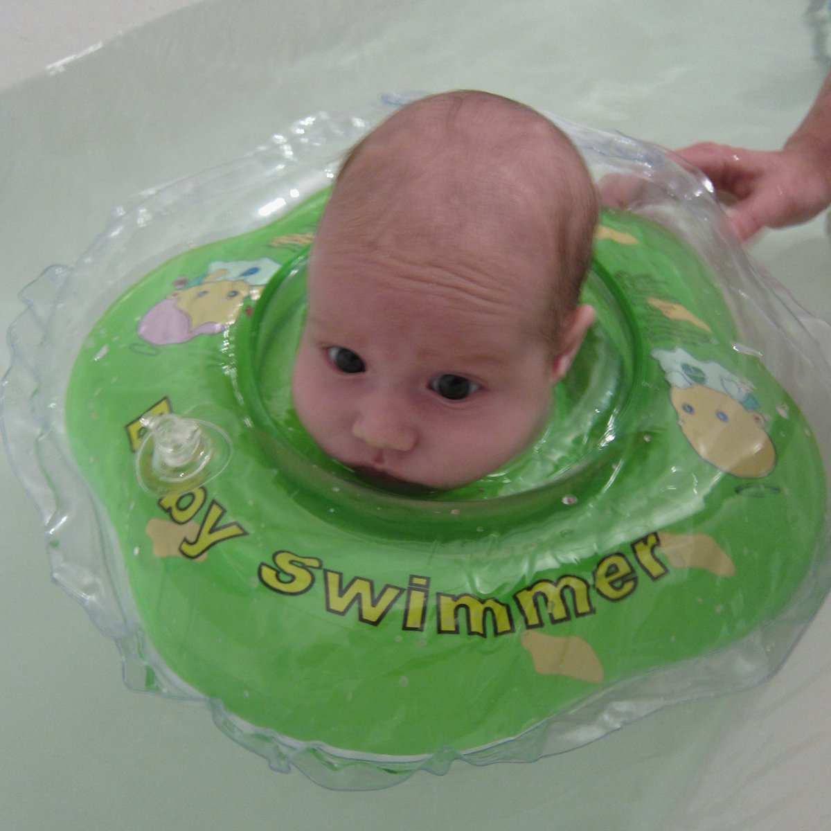 Месяца в полтора, например, младенцу можно купить плавательный круг, и он здорово гребёт в ванне, бороздя её из конца в конец. Это ужасно прикольно: колбаса, которая не то что ходить или ползать не может, но даже голову ещё толком не держит, вдруг начинает сам двигаться.