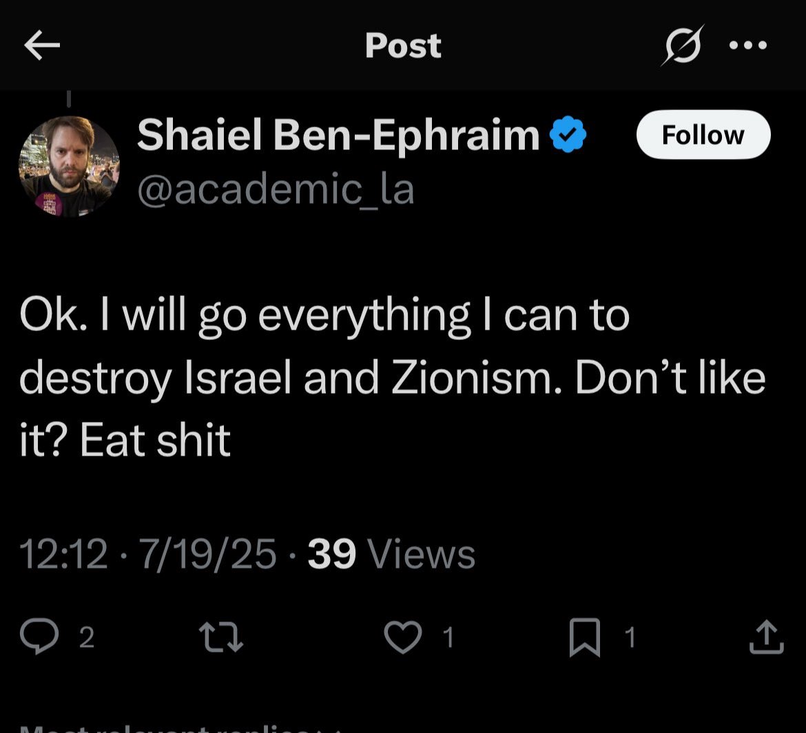 “I’m not a politician. I’m not an extremist. I’m an artist. A Jew. The son of Yaacov Agam. And I can’t stay silent while hate is being repackaged as justice and legitimized by an elected official in New York: @ZohranKMamdani .