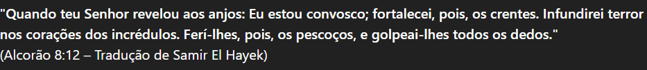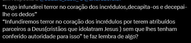 Abaixo a pessoa faz junção de 2 textos distintos para criar uma narrativa afirmando que o islã é uma religião violenta.