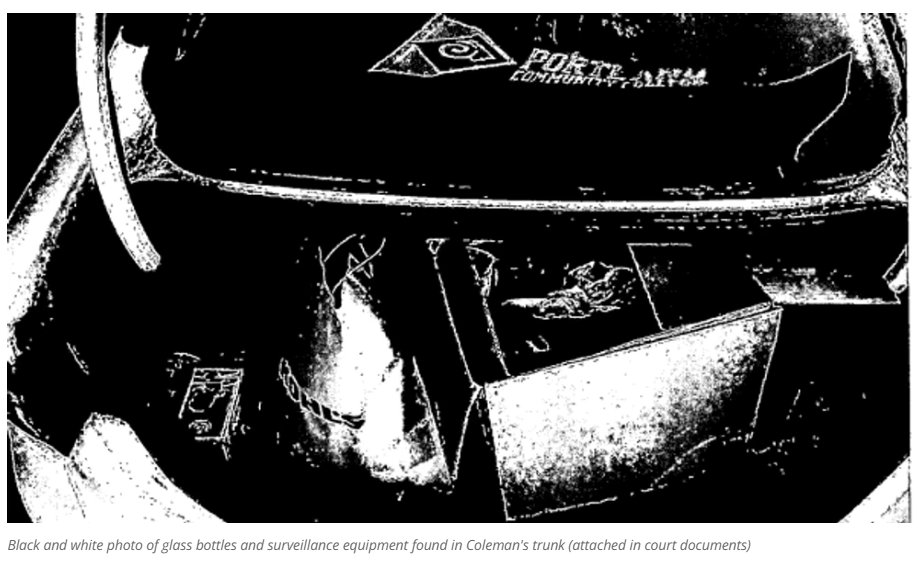 Investigators found him in possession of Molotov cocktails, surveillance equipment, tactical axes, military knives, and shovels. Coleman had also been making payments for an AR-15, according to court documents.