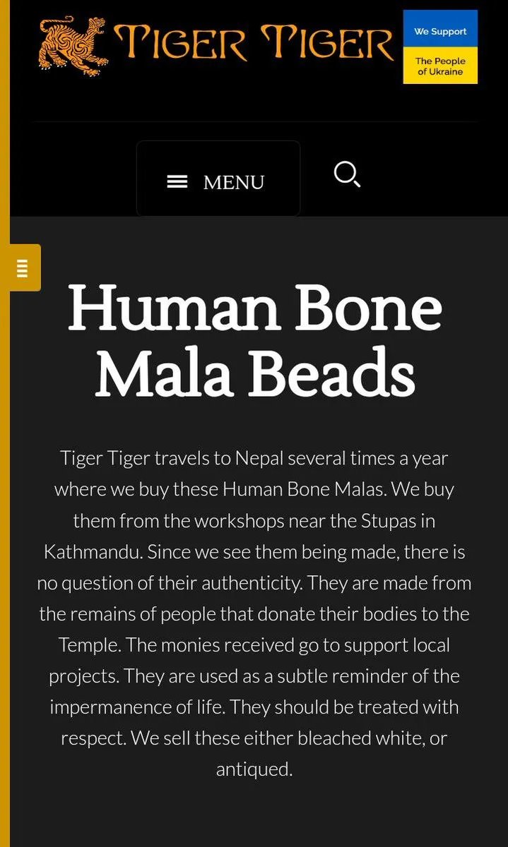'Traditionally the bone is sourced from people who donated their bodies to the temples for the benefit of the monks and their work.' tiger-tiger.com/shop/mala-bead…