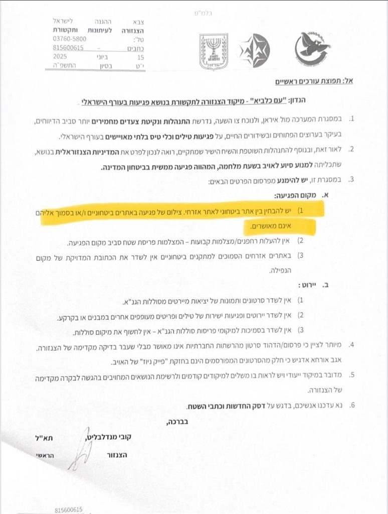 A number of publications were made that outlined specific guidelines relating to censorship during the war - All of them had to do with the publication of strike locations or launch locations, either by giving the exact location or filming it - with a focus on military installations.