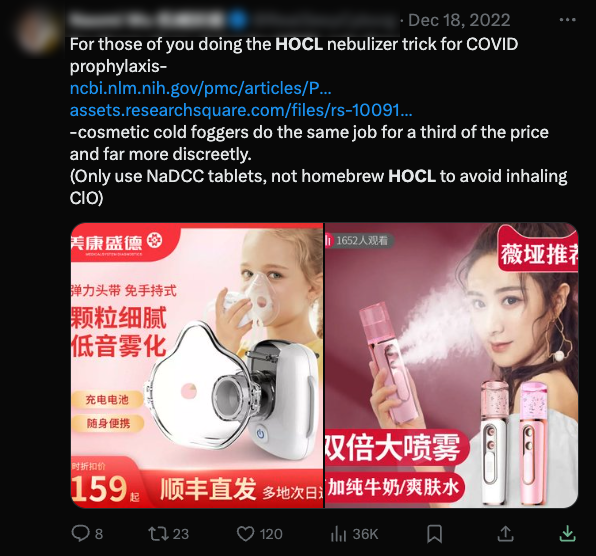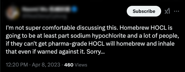 So the problem we have with inhaled HOCL is that while pure inhaled HOCL seems reasonably safe and effective based on several studies, we can’t really rely on people to obtain pure HOCL of the pharmaceutical grade used in the various studies because it’s not all that easy to come by. pmc.ncbi.nlm.nih.gov/articles/PMC87…. pmc.ncbi.nlm.nih.gov/articles/PMC91…(STX%3B%20APR,and%20seasonal%20coronavirus. europepmc.org/article/ppr/pp….