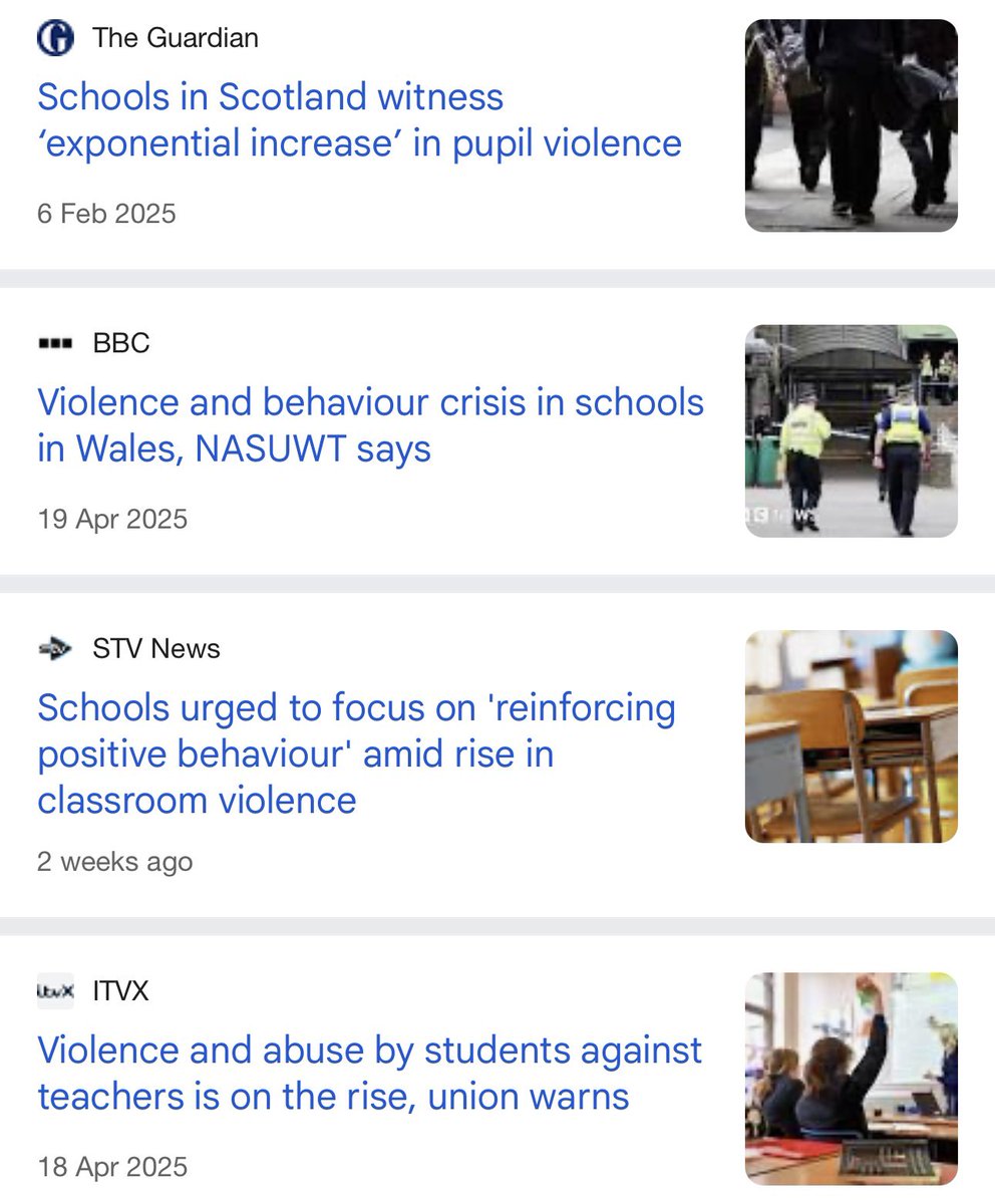 @rhovanielle @JohnWebbMD To be clear l, I didn’t at any point make the claim that “Covid has caused increasing violence in schools” or “Covid has caused more antisocial behaviour”.