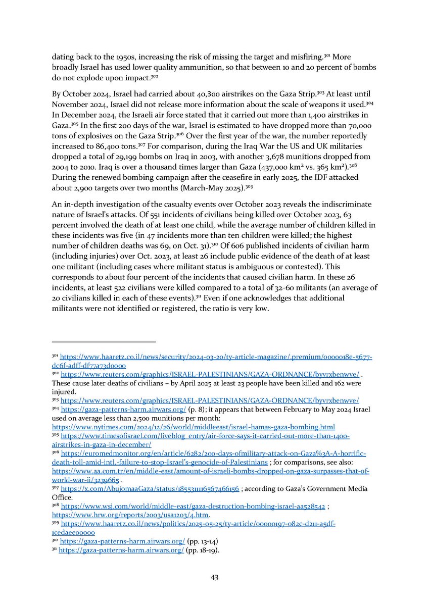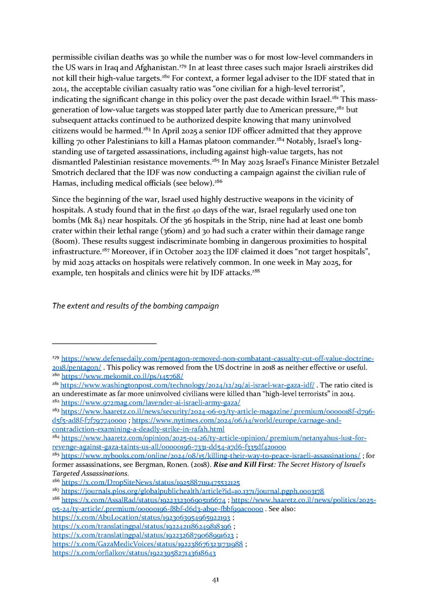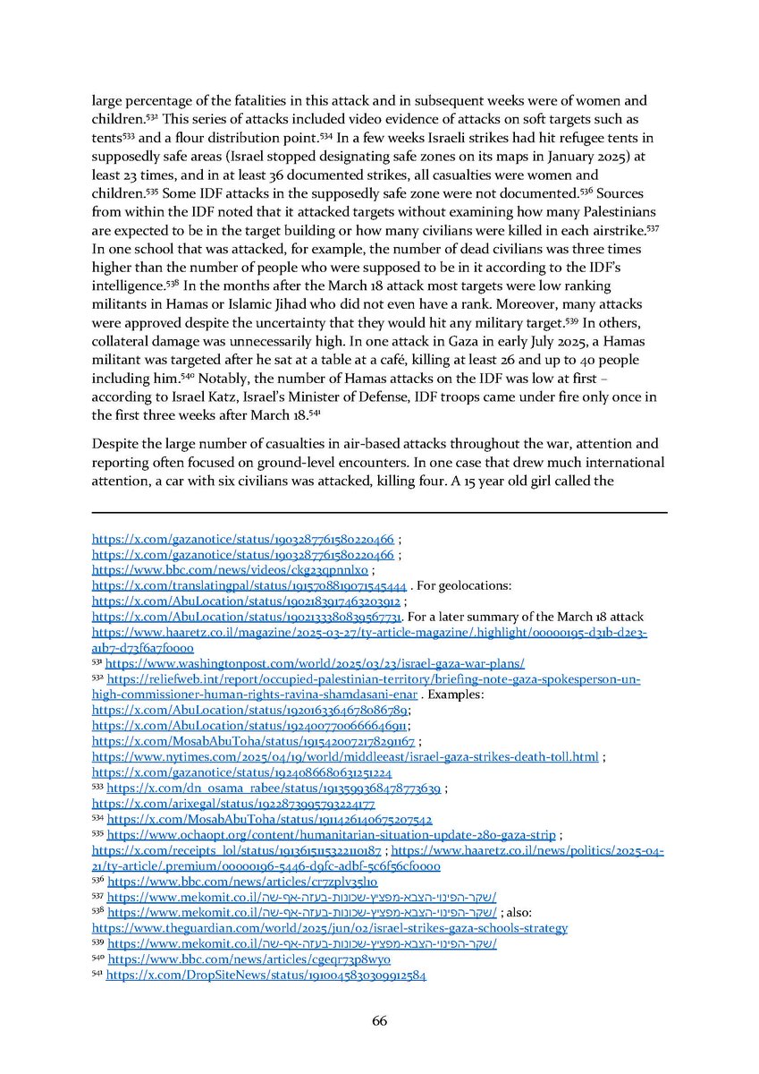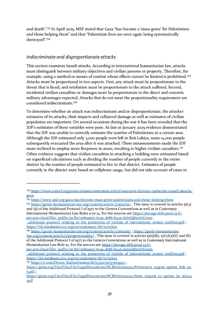 5/ Section 3⃣ examines the indiscriminate and disproportionate Israeli attacks. It zooms in to the policy underlying the bombing campaign as well as its extent and results over time. An additional subsection details some of the weapons used in these attacks.