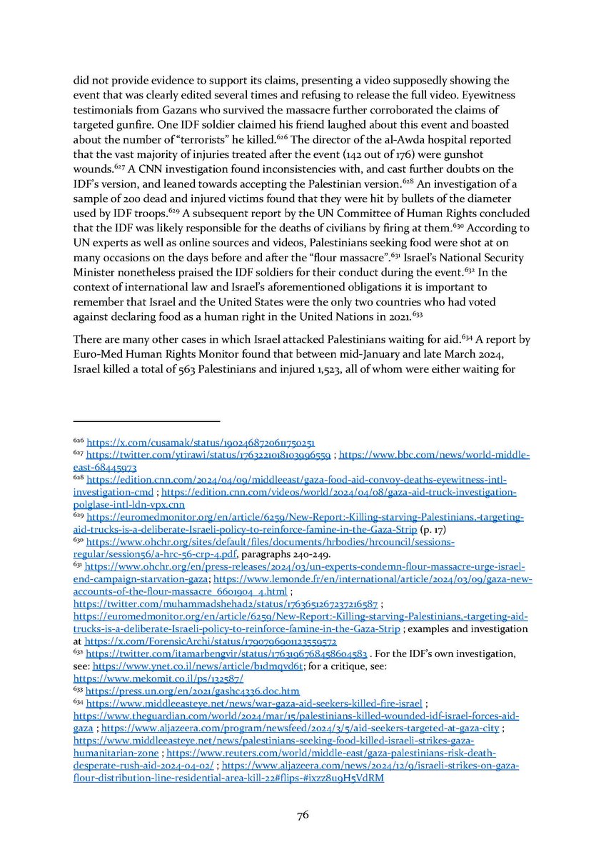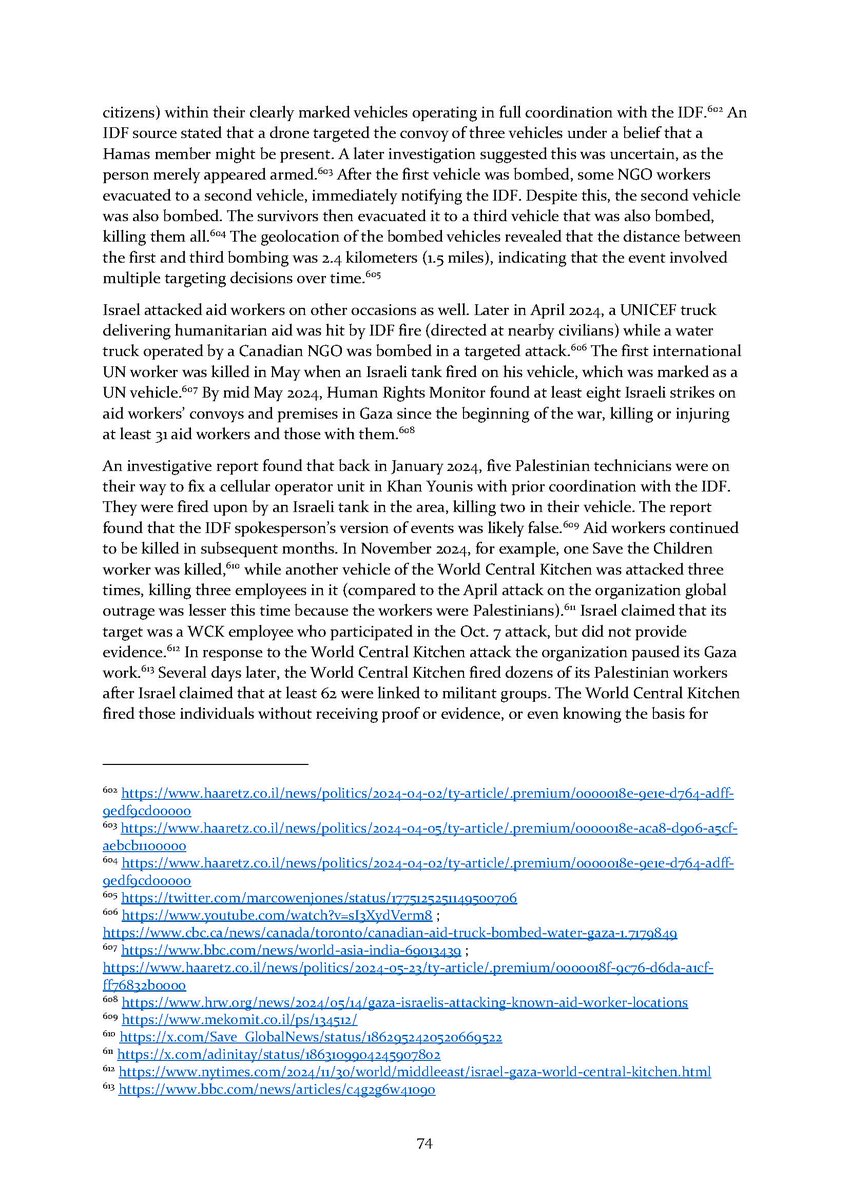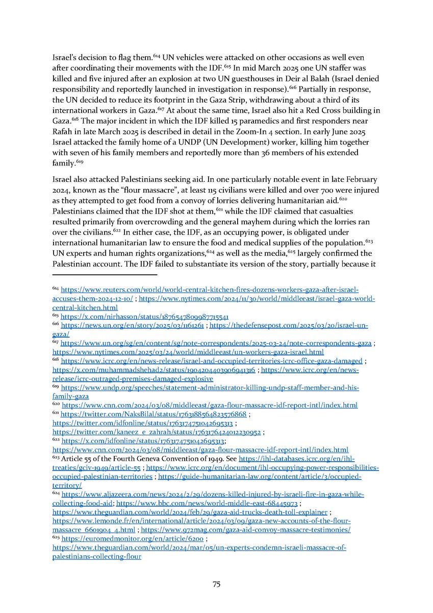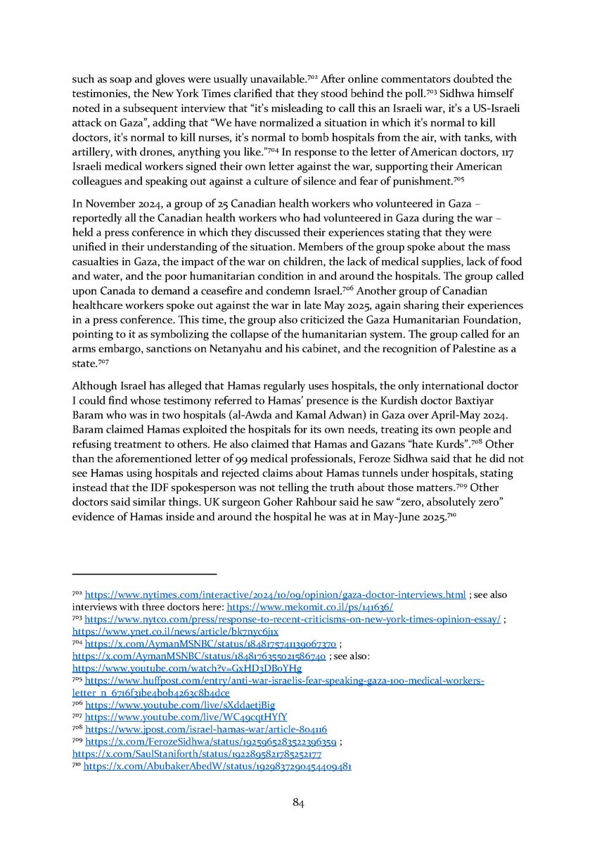 8/ Section 7⃣ describes attacks on aid workers and aid seekers. Section 8⃣ includes dozens of testimonies by international health workers who volunteered in Gaza over the conflict.