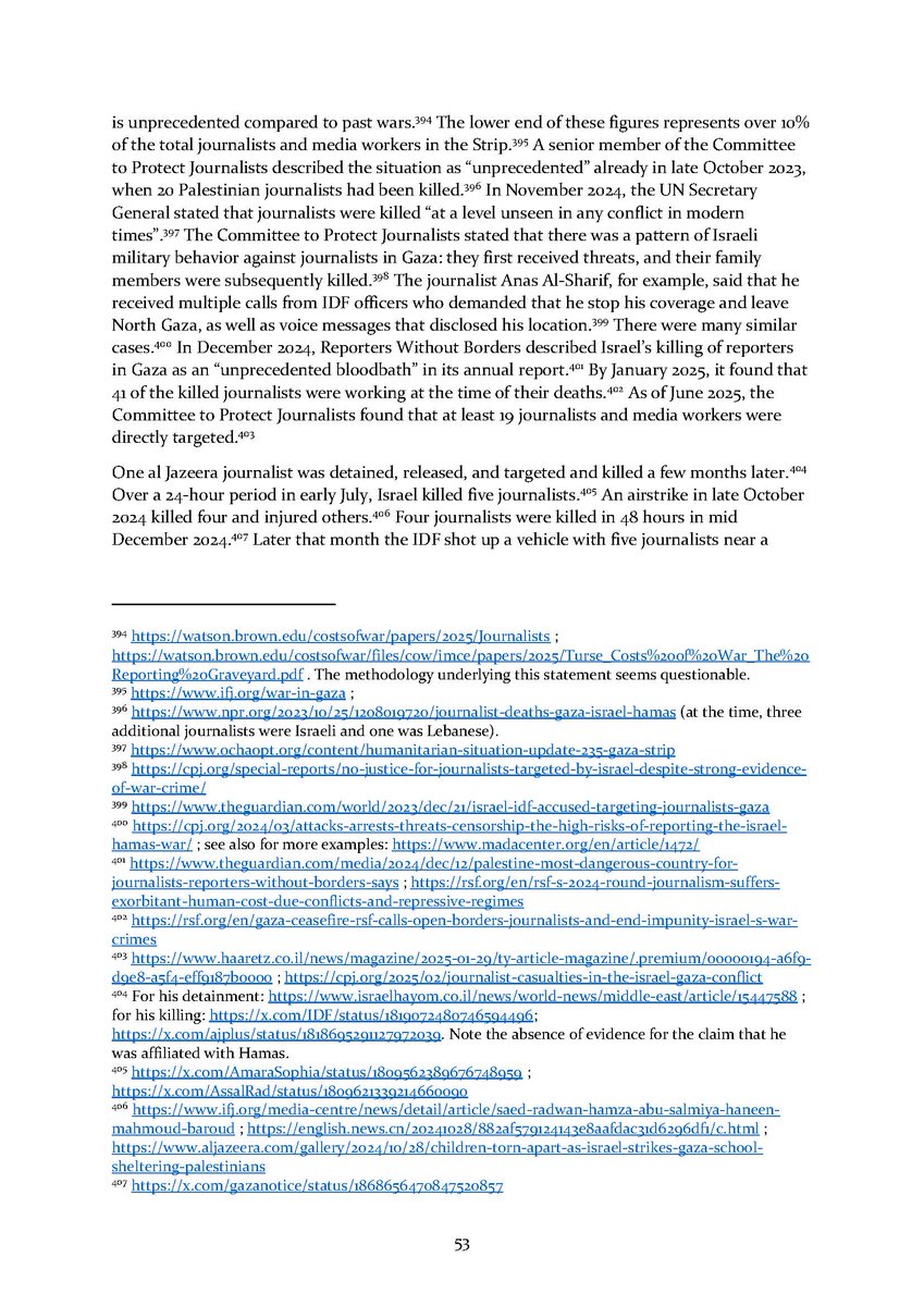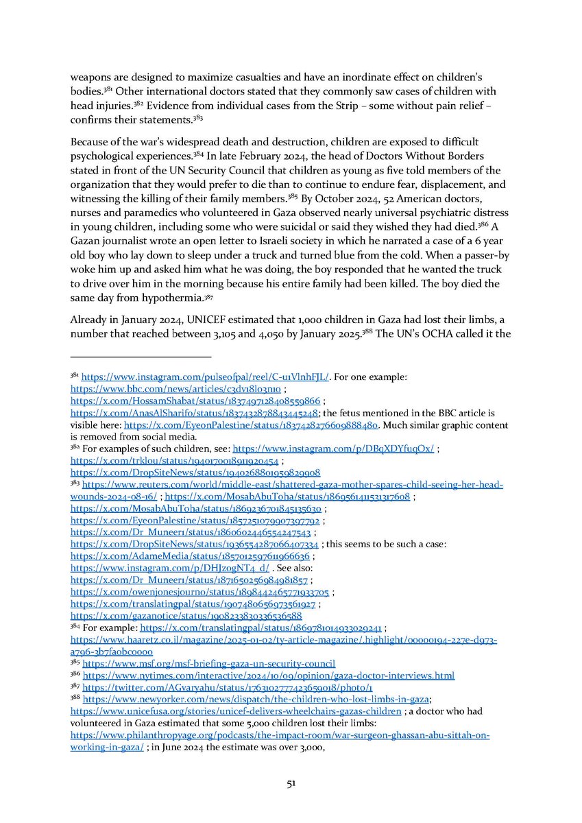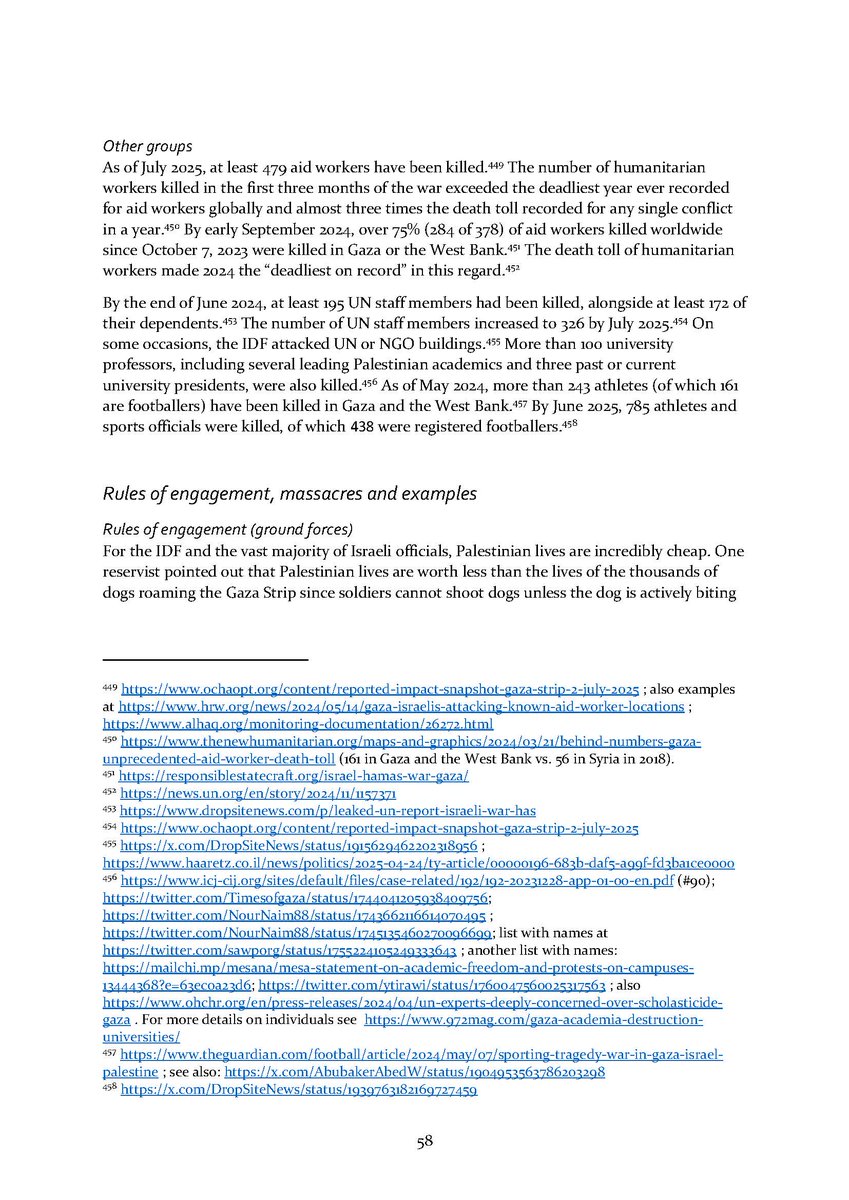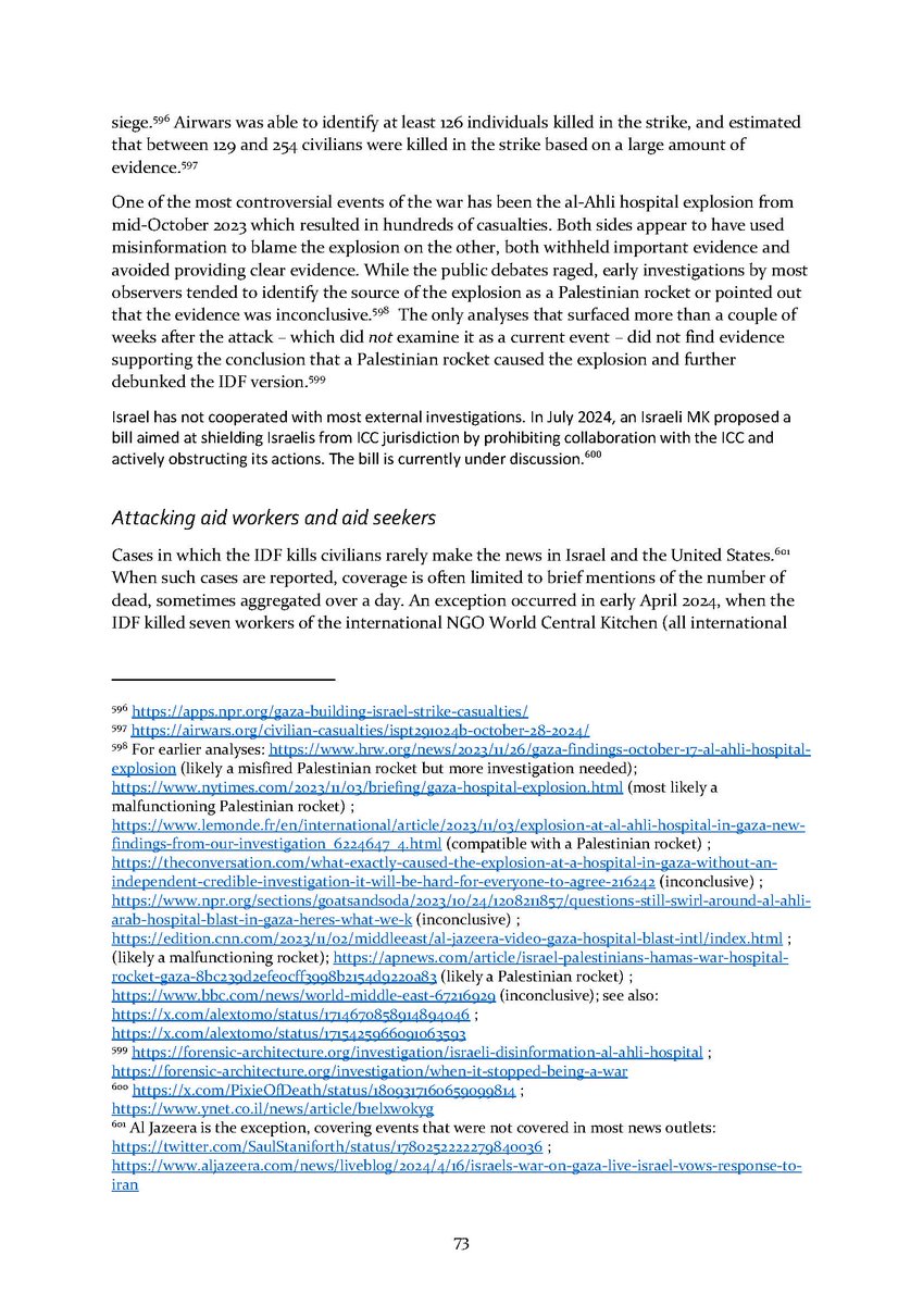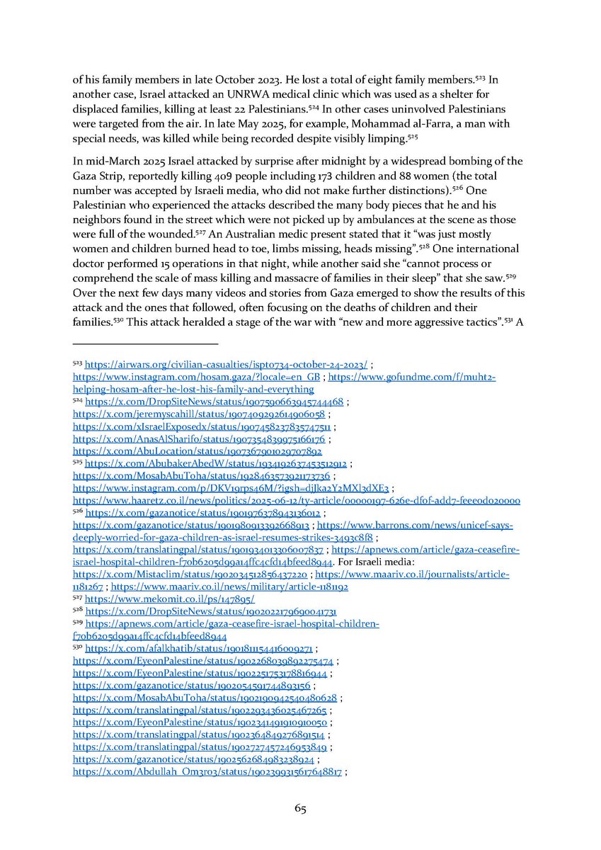 8/ Section 7⃣ describes attacks on aid workers and aid seekers. Section 8⃣ includes dozens of testimonies by international health workers who volunteered in Gaza over the conflict.