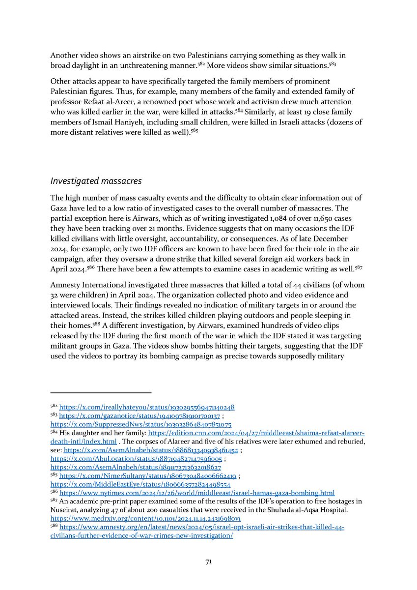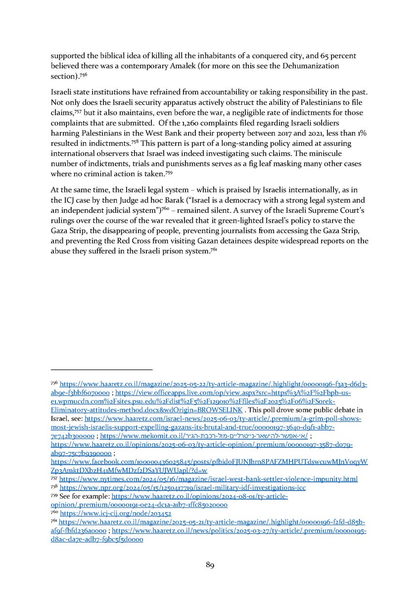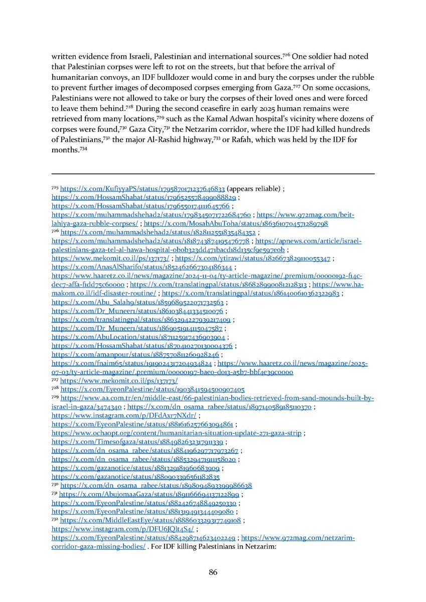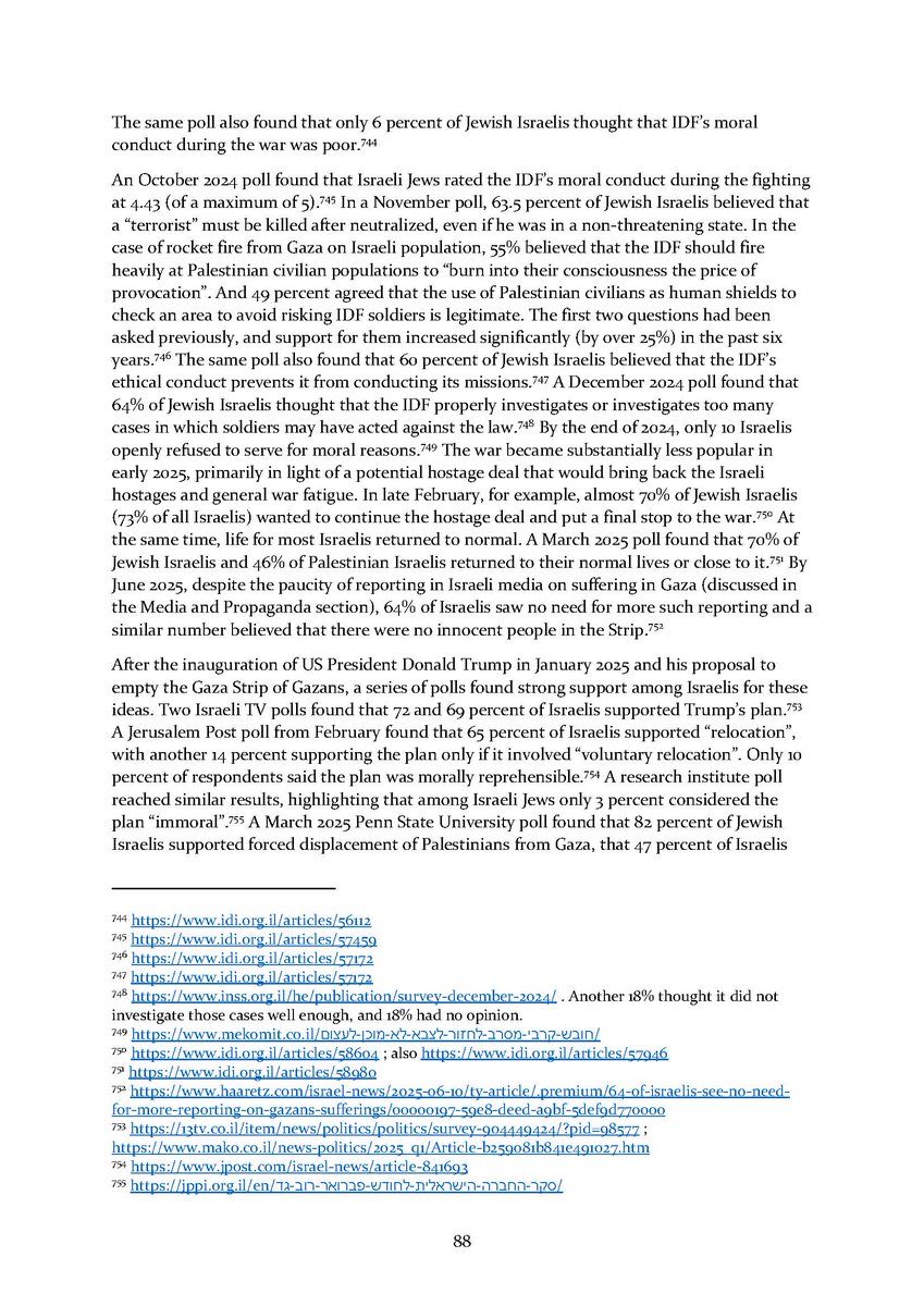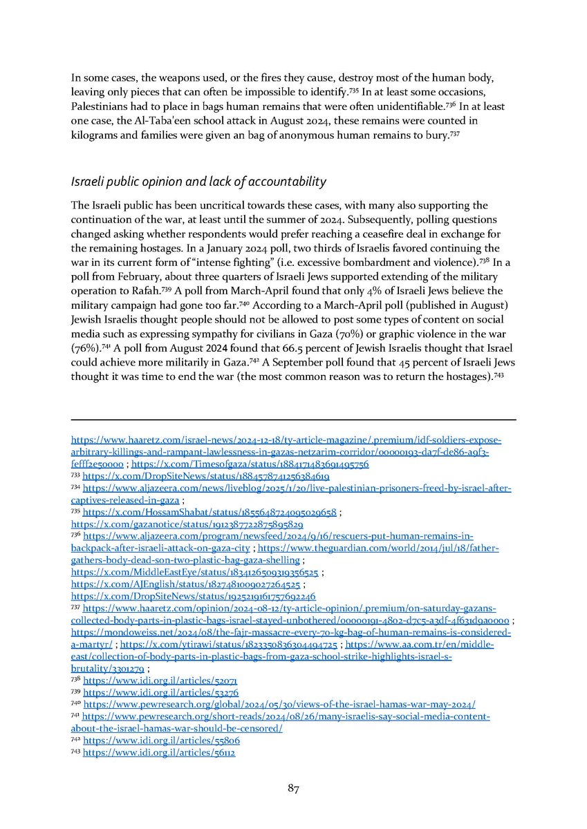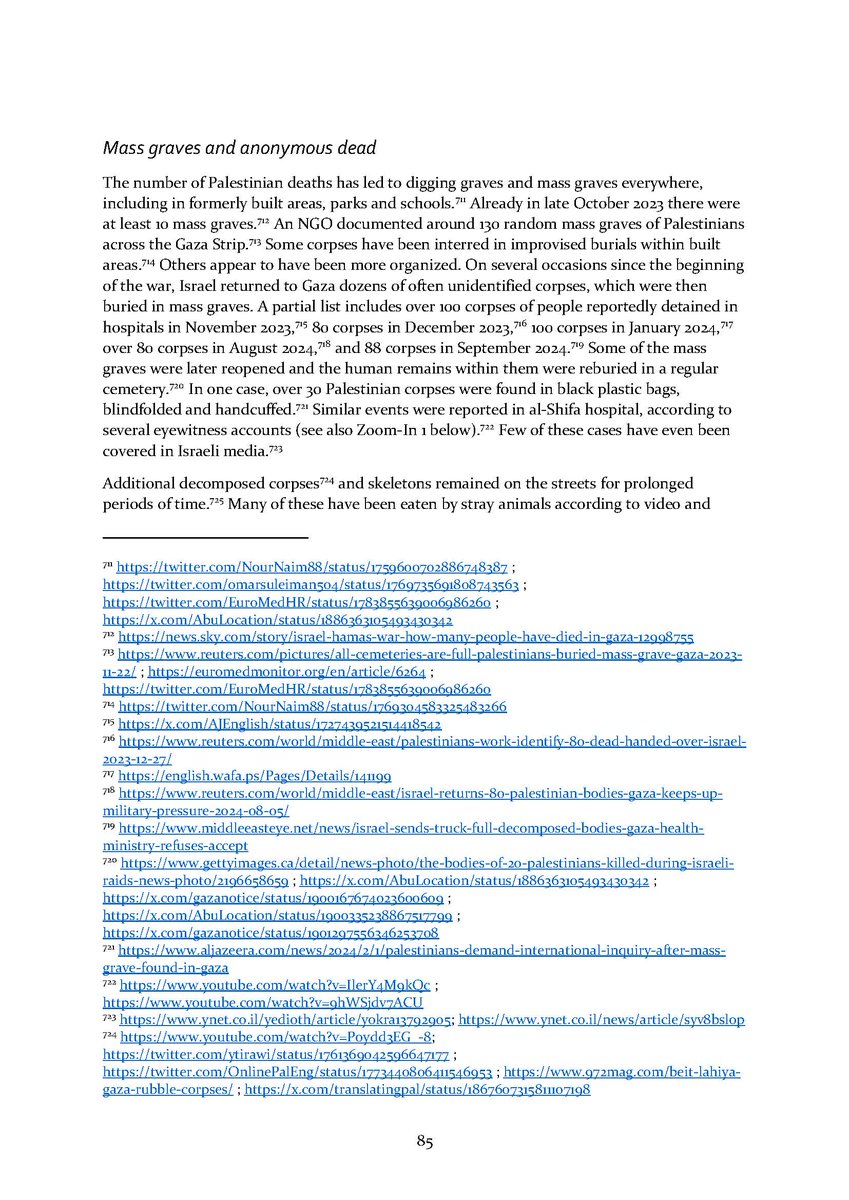9/ Section 9⃣ expands on mass graves in Gaza and the many anonymous dead found there. The final section 🔟 describes Israeli public opinion and the lack of accountability for all of the above in Israeli society.