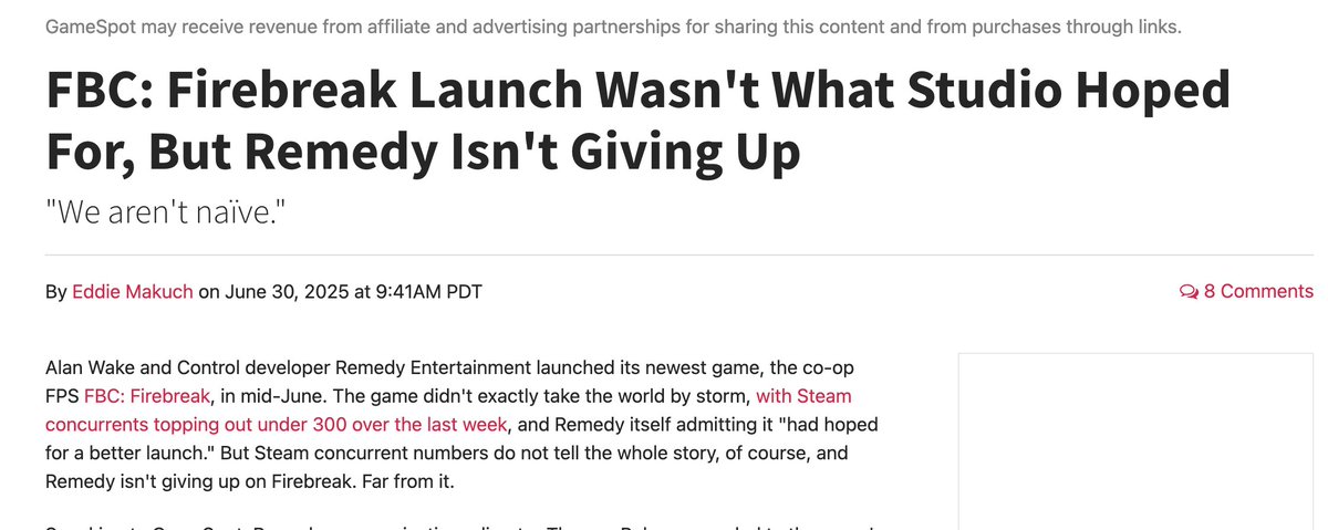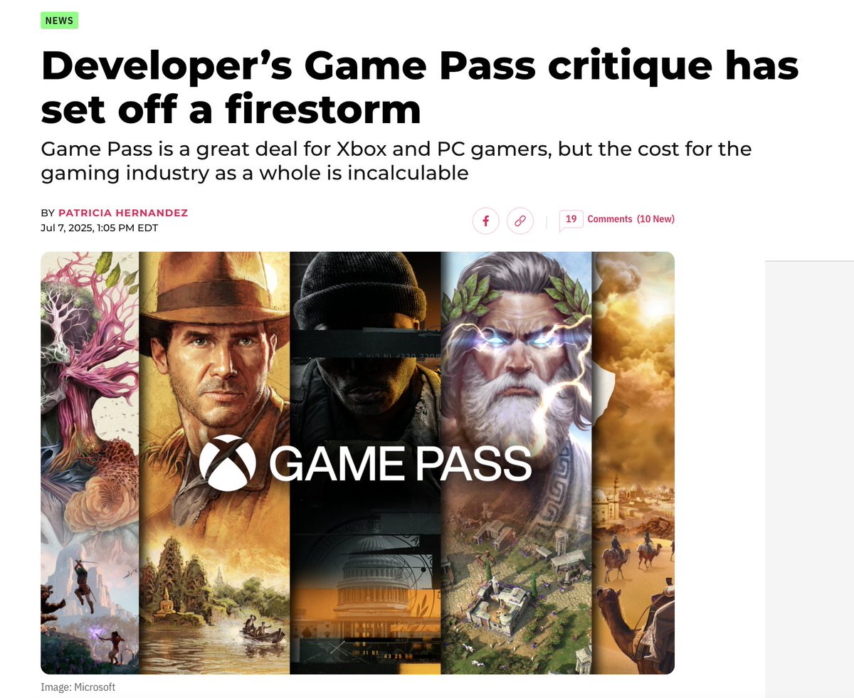 Sidenote: FBC: Firebreak was available for free to Gamepass and PS+ subscribers. Splitgate 2 was also free. Don’t be misled by articles like the one in the image below that the industry's problems can be chalked up to Gamepass, a service with barely any growth the last few years.