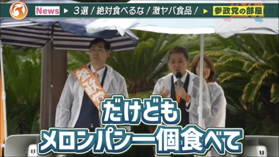 It started when an old video of a Sanseito politician resurfaced online, in which he claimed that he had "seen many people die the day after eating just one melonpan." I do not know why he said this, but Sanseito’s obsession with organic food and fear of additives likely fueled the claim.