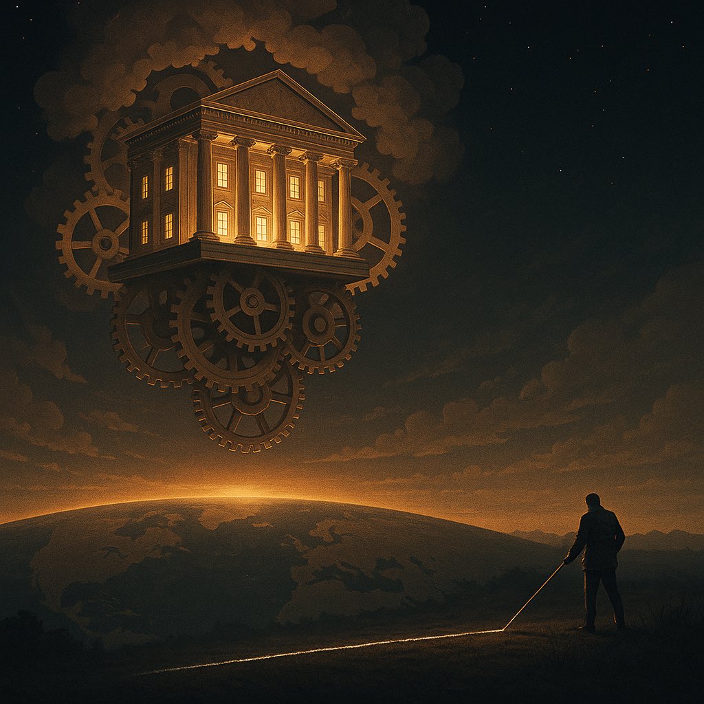 Once there was a vast and glittering House of a Thousand Rooms, suspended in midair like a floating city. The House promised sanctuary, wisdom, and power to all who entered. Its gates bore many signs; “Justice, Freedom, Reform, Tradition, Innovation, Rebellion.” Each room behind each sign claimed to oppose the others. Some walls were painted red, others blue, others gold or green. Some were filled with candles, others with screens. Some wore clerical garb, others suits, some in branded causal merch, while others wore lab coats. Travellers arrived daily in search of truth. They were told: “Choose a room. Debate those in other rooms. Defend your view and refute theirs.” And so they did. They moved from room to room and joined movements. They read manifestos and made signs. They adopted flags (or renounced them) and made podcasts. They held protests, wrote papers and argued across panels. They followed thought leaders who told them what to think and how to presume that they were thinking for themselves. But few ever asked; “What is the foundation of the House itself?” “Who built it?” “Why are all the rooms so eerily symmetrical?”