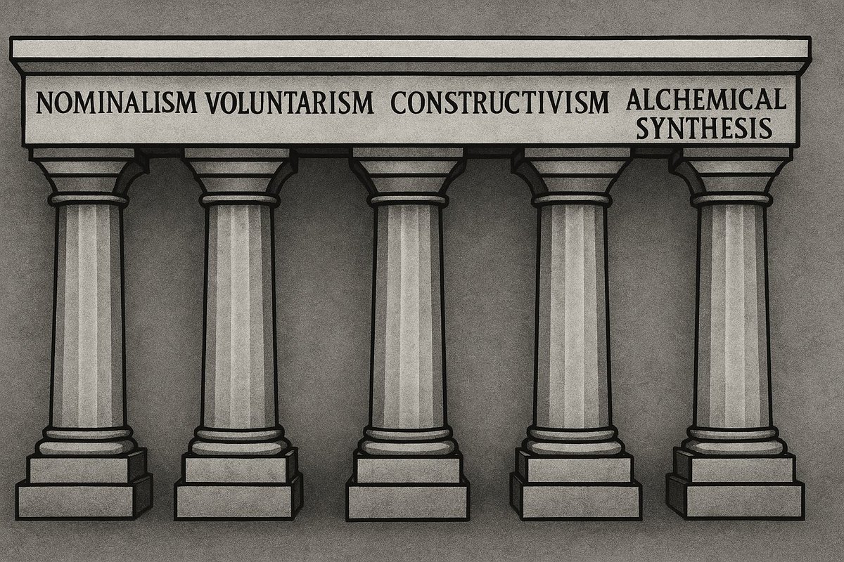 Together, these formed the metaphysical lattice on which the House was supported and sustained. They were never questioned. They were canonized as “progress.” And the public, formed in illusion, could no longer remember what truth tasted like. The pillars that upheld the false floor were unseen by the people; nominalism, voluntarism, constructivism, dialectic, hermetic and alchemical synthesis. Together, they formed the architecture of containment; disguised as philosophy, and ‘The Science of Reason’ - upheld as progress.
