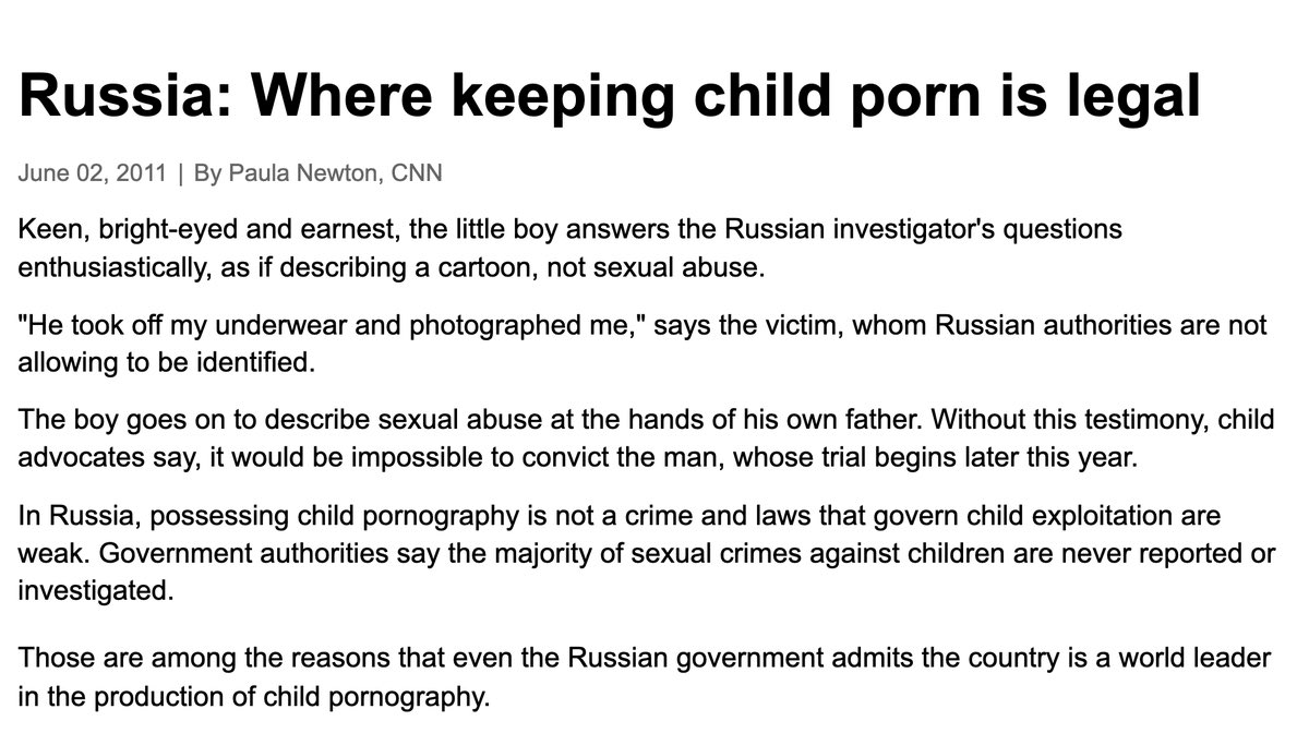 Die Diskrepanz zwischen der Propaganda, die in den sozialen Medien verbreitet wird, und der Realität von sexueller Gewalt in Russland ist eklatant. So ist Russland zB eines der wenigen Länder, die den Besitz von Kinderpornografie oder häusliche Gewalt nicht bestrafen.