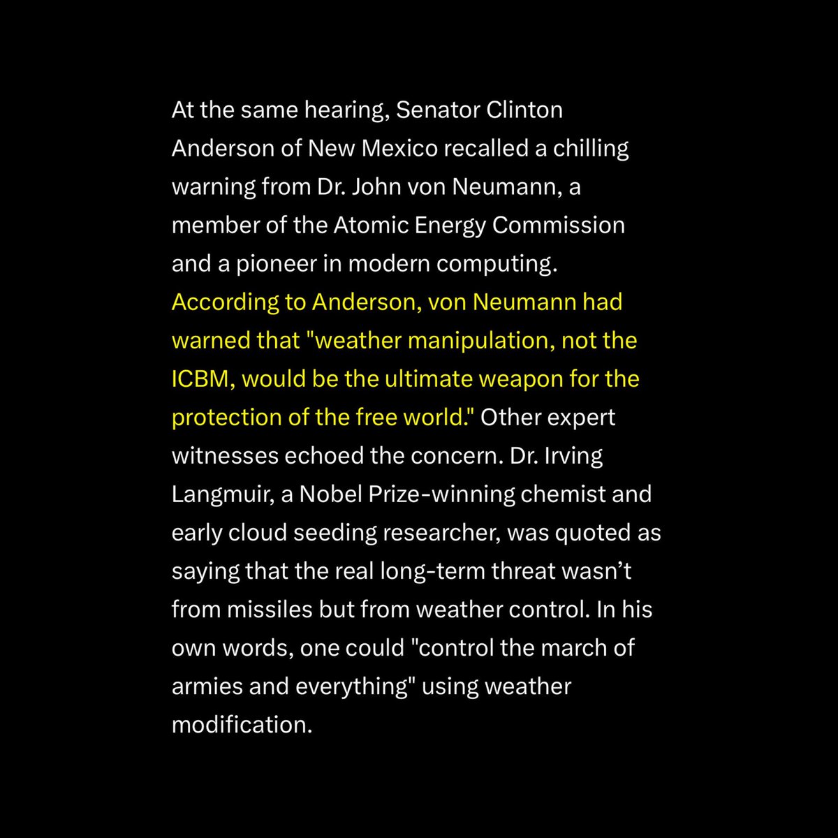 “Weather manipulation, not the ICBM, would be the ultimate weapon for the protection of the free world.”