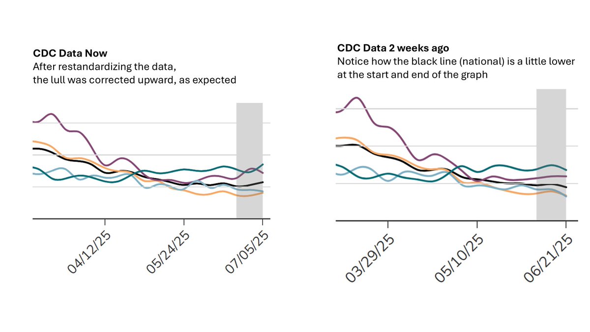 See how the black line doesn't go as low now. You might have to zoom in to see it. It may seem small, but it had the effect of increasing 2025 infections (through June 21) by about 9 million.