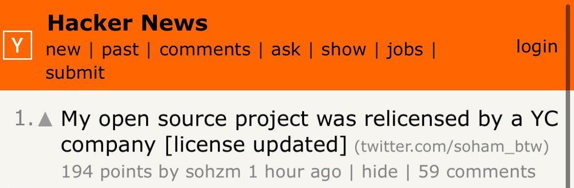 - YC startup steals & relicenses it, claiming "built in 4 days..."